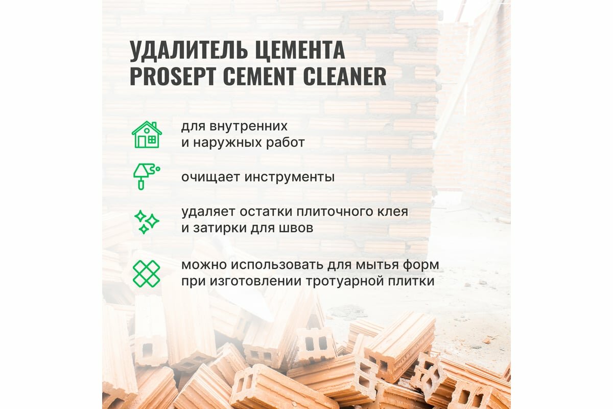 Удалитель цемента prosept cement cleaner для каф. кирпич. стекл. металл. 1л
