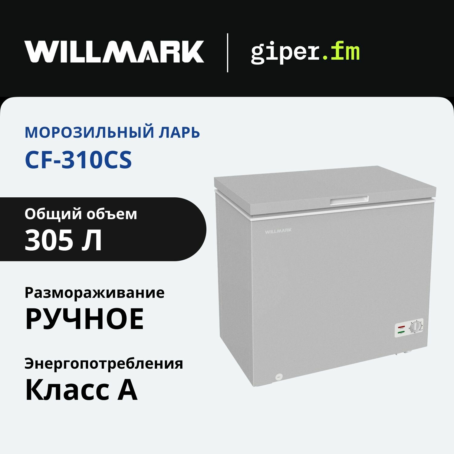 Морозильник-ларь WILLMARK CF-310CS серый информация: