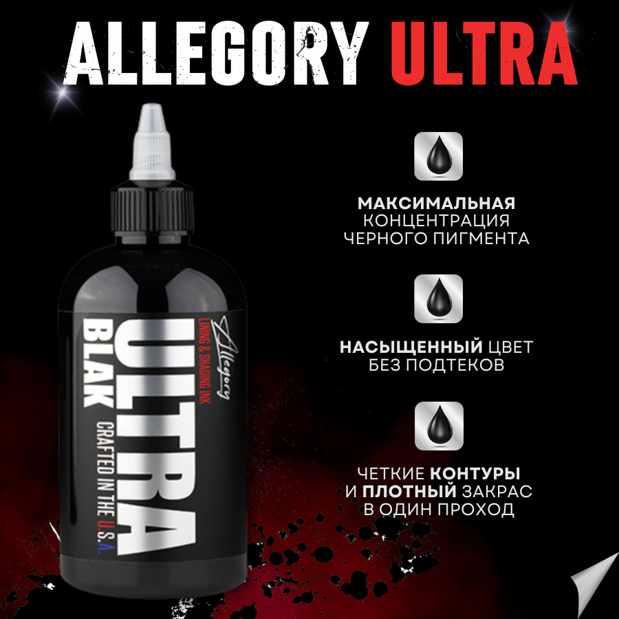 Allegory Ultra Blak, Black, Черная краска концентрат для татуировки и татуажа, black ink 240 мл информация: