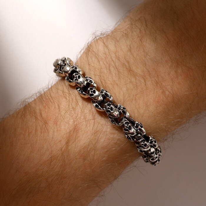 10 цен на Браслет мужской «Брутал» черепа, цвет чернёное серебро, 22 см
