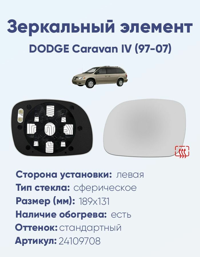 Зеркальный элемент левый DODGE Caravan IV (97-07) сфера нейтральный с обогревом информация: