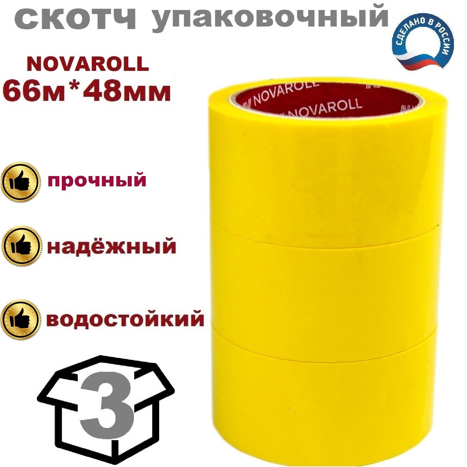 Отзывы на Novaroll 48мм*66 м 3 шт. в наборе клейкая лента канцелярская широкая липкая желтая / скотч цветной желтый
