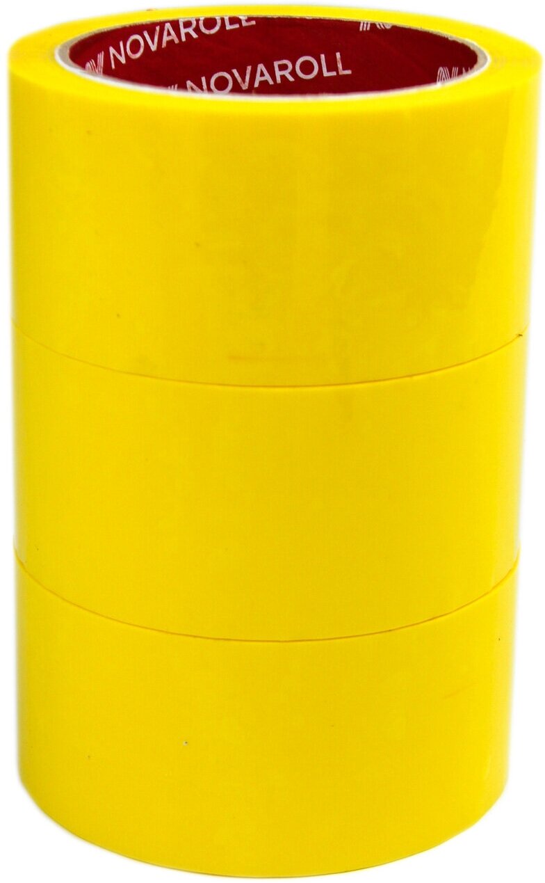 Novaroll 48мм*66 м 3 шт. в наборе клейкая лента канцелярская широкая липкая желтая / скотч цветной желтый информация: