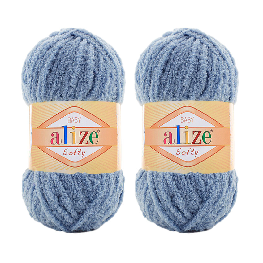 10 цен на Пряжа для вязания Alize Softy (Ализе Софти), комплект: 2 шт., цвет: джинсовый (374), состав: 100% микрополиэстер, вес: 50 г, длина: 115 м