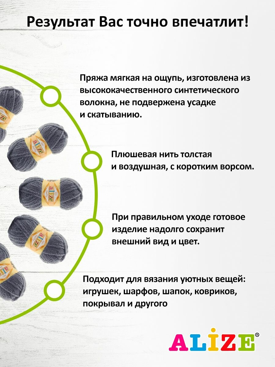 10 цен на Пряжа Alize Softy Ализе софти Темно-серый (87) 5 мотков 50 г / 115 м (100% микрополиэстер)