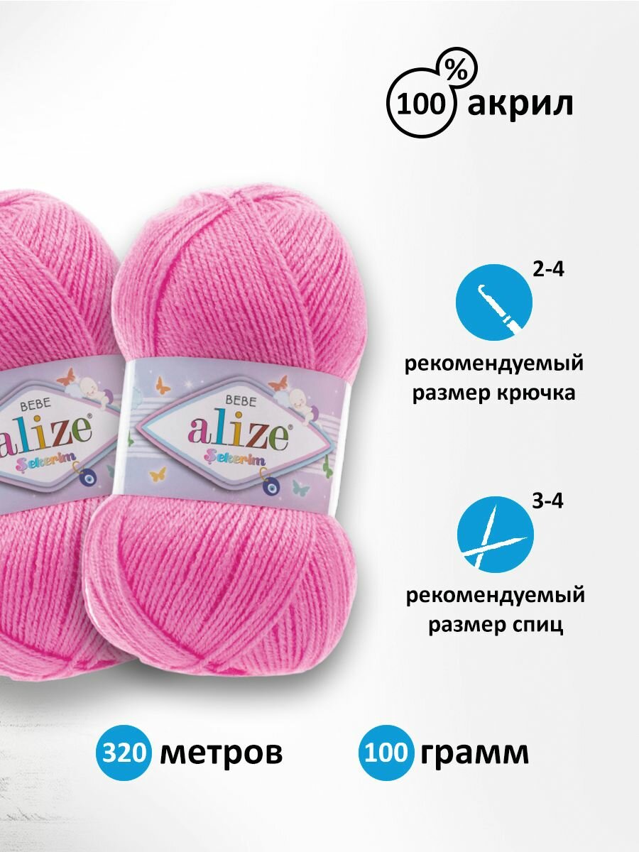 Отзывы на Пряжа для вязания Alize Sekerim Bebe (Шекерим Беби) - 5 мотков 157 ярко-розовый, детская гипоаллергенная, 100% акрил, 320м/100г