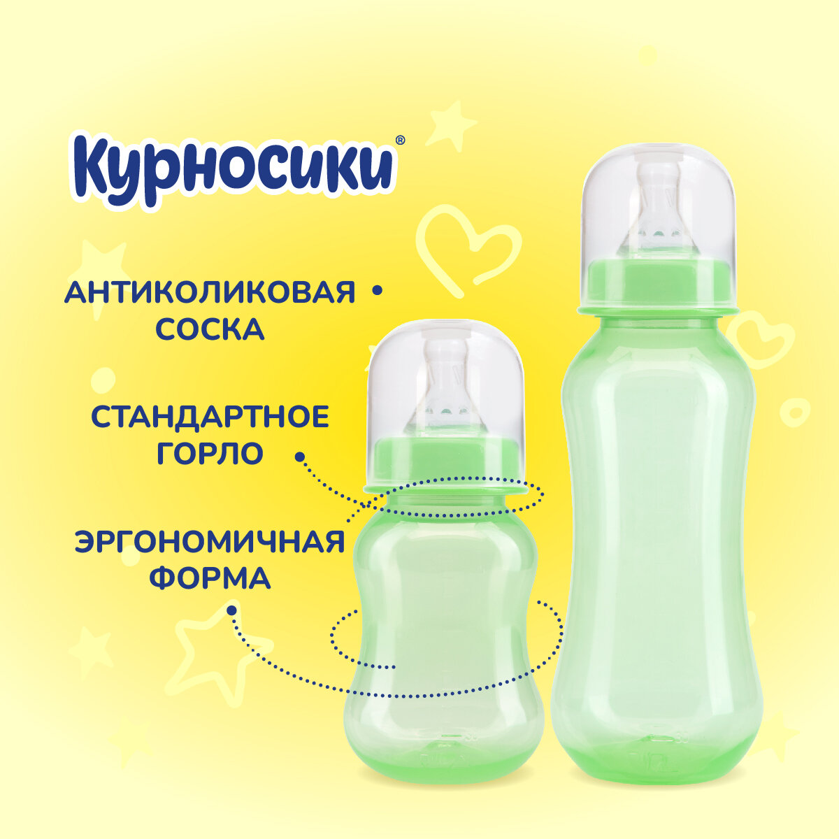 Бутылочка для кормления новорожденных Курносики набор из 2 шт 125 мл и 250 мл, от 0+ мес, зеленые 538 ₽