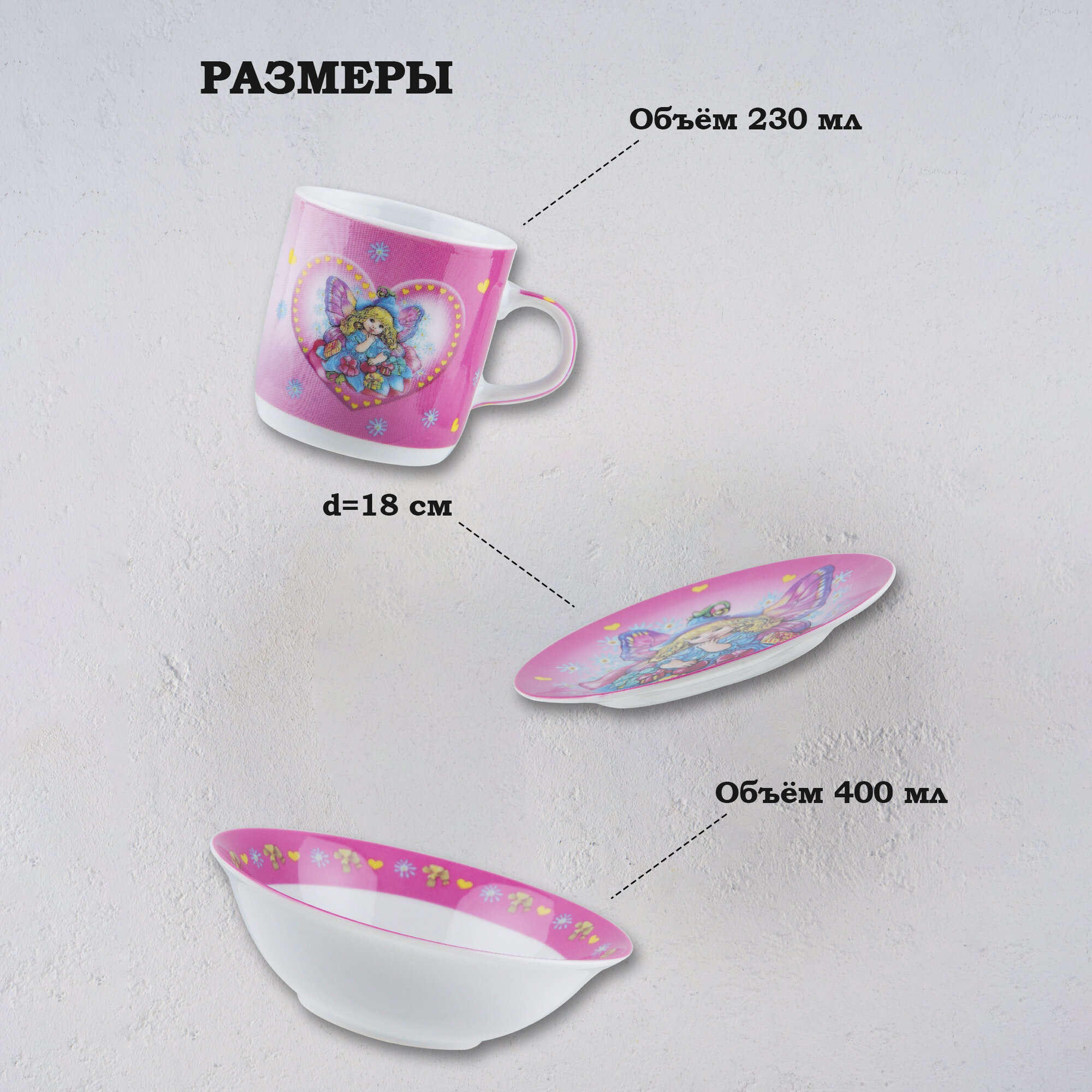 Набор детской посуды «Дюймовочка», 3 предмета: салатник, тарелка обеденная, кружка информация: