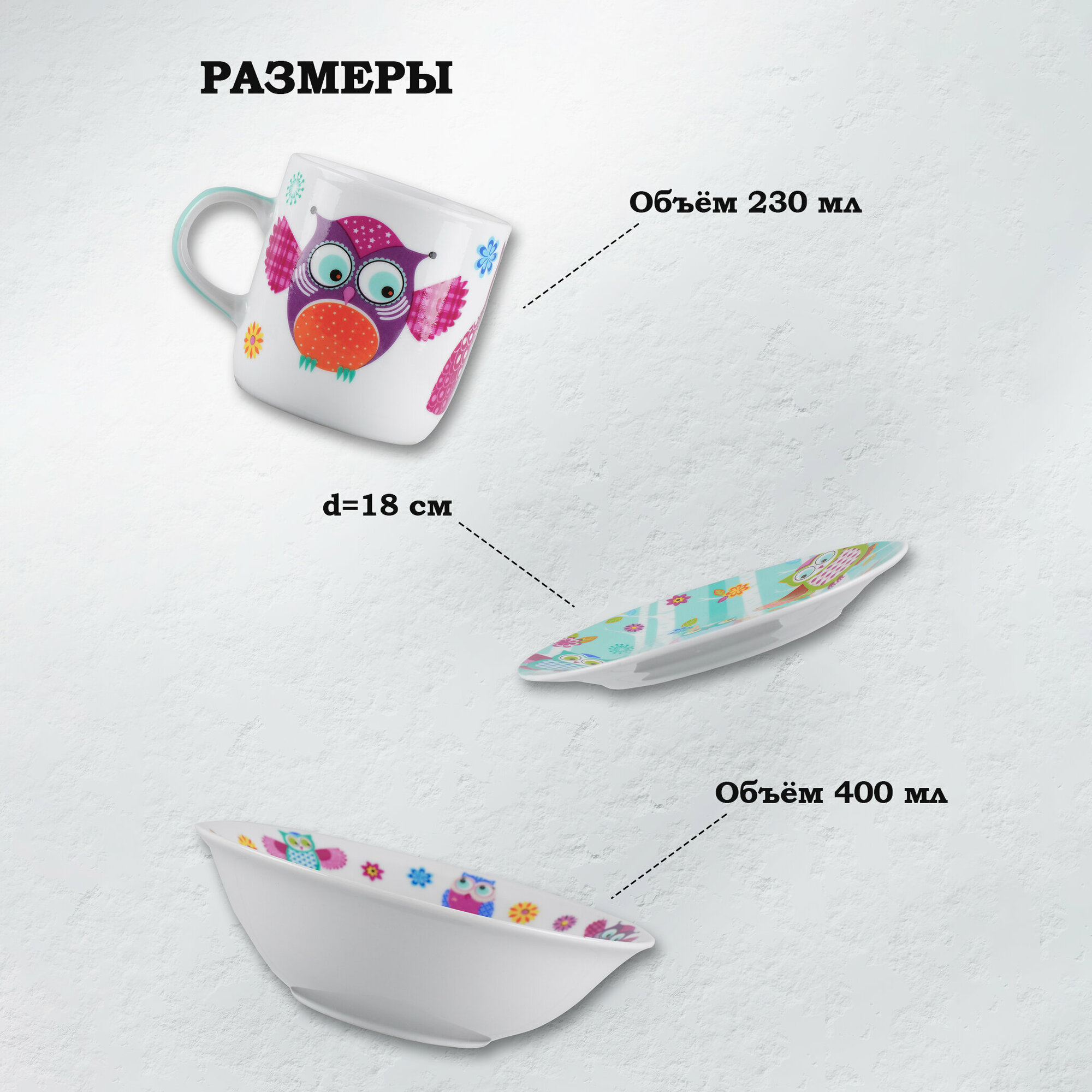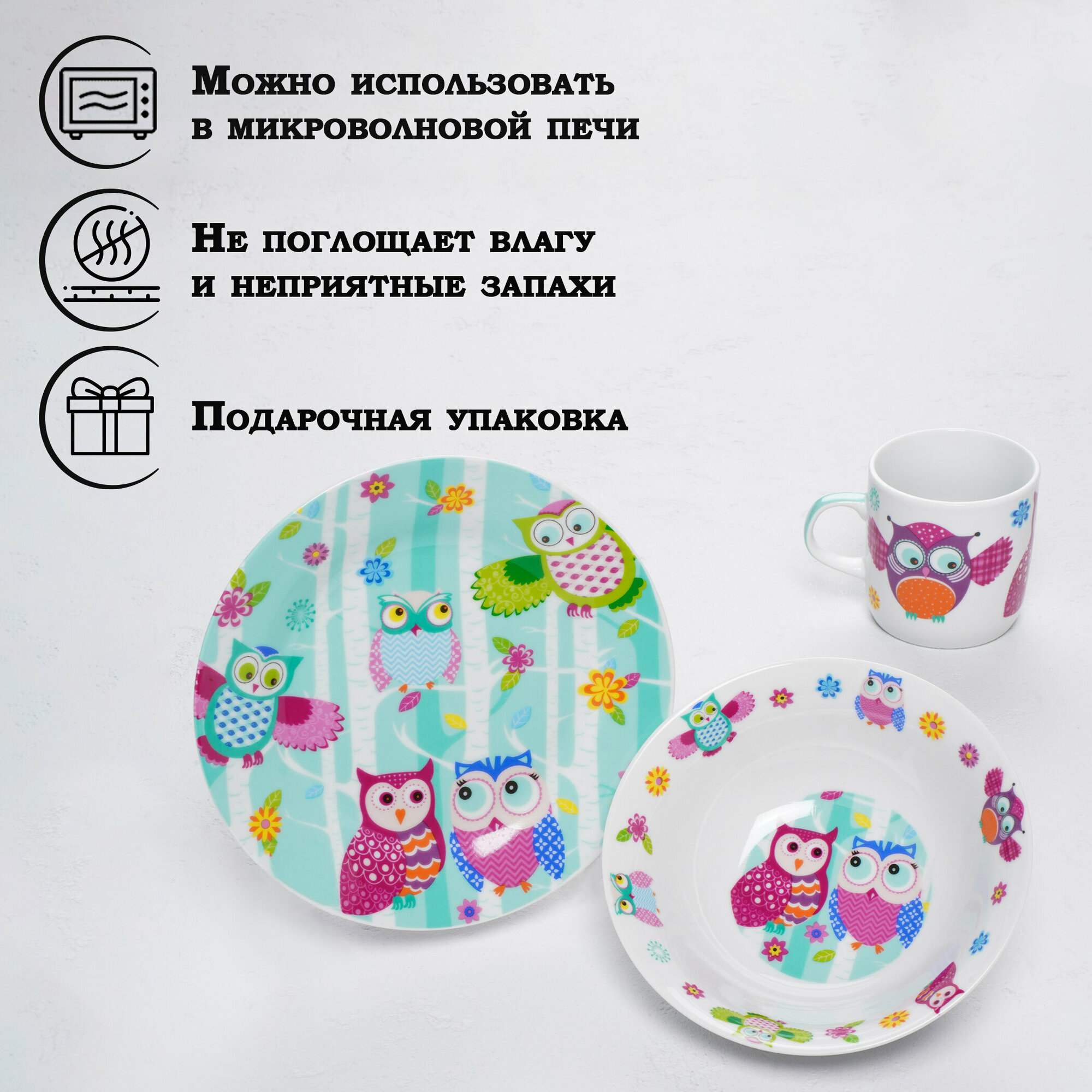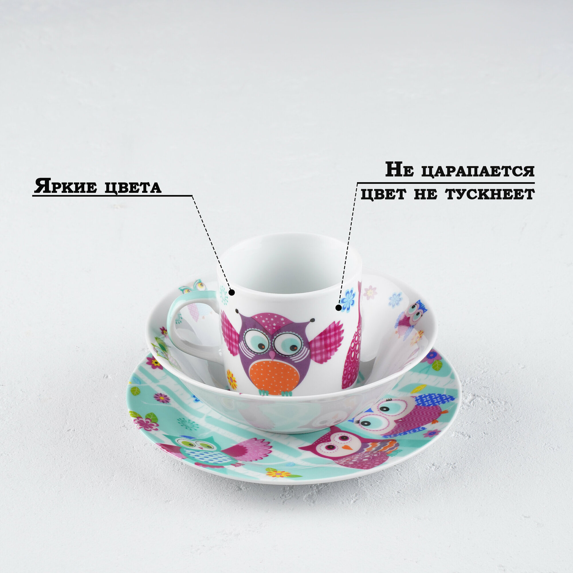 Набор детской посуды Доляна 3 предмета "Совушки" (3850494) информация: