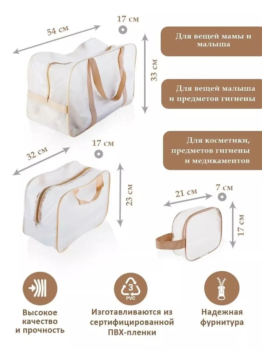 Отзывы на Прозрачные сумки матовые в роддом 3 шт., бренд "Золотой октябрь", цвет бежевый