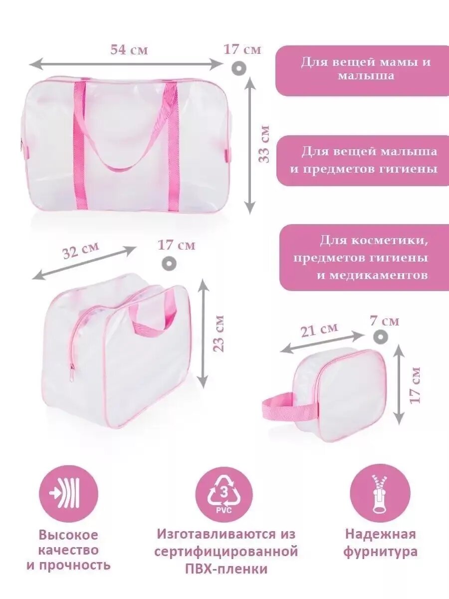 Отзывы на Прозрачные сумки матовые в роддом 3 шт., бренд "Золотой октябрь", цвет розовый