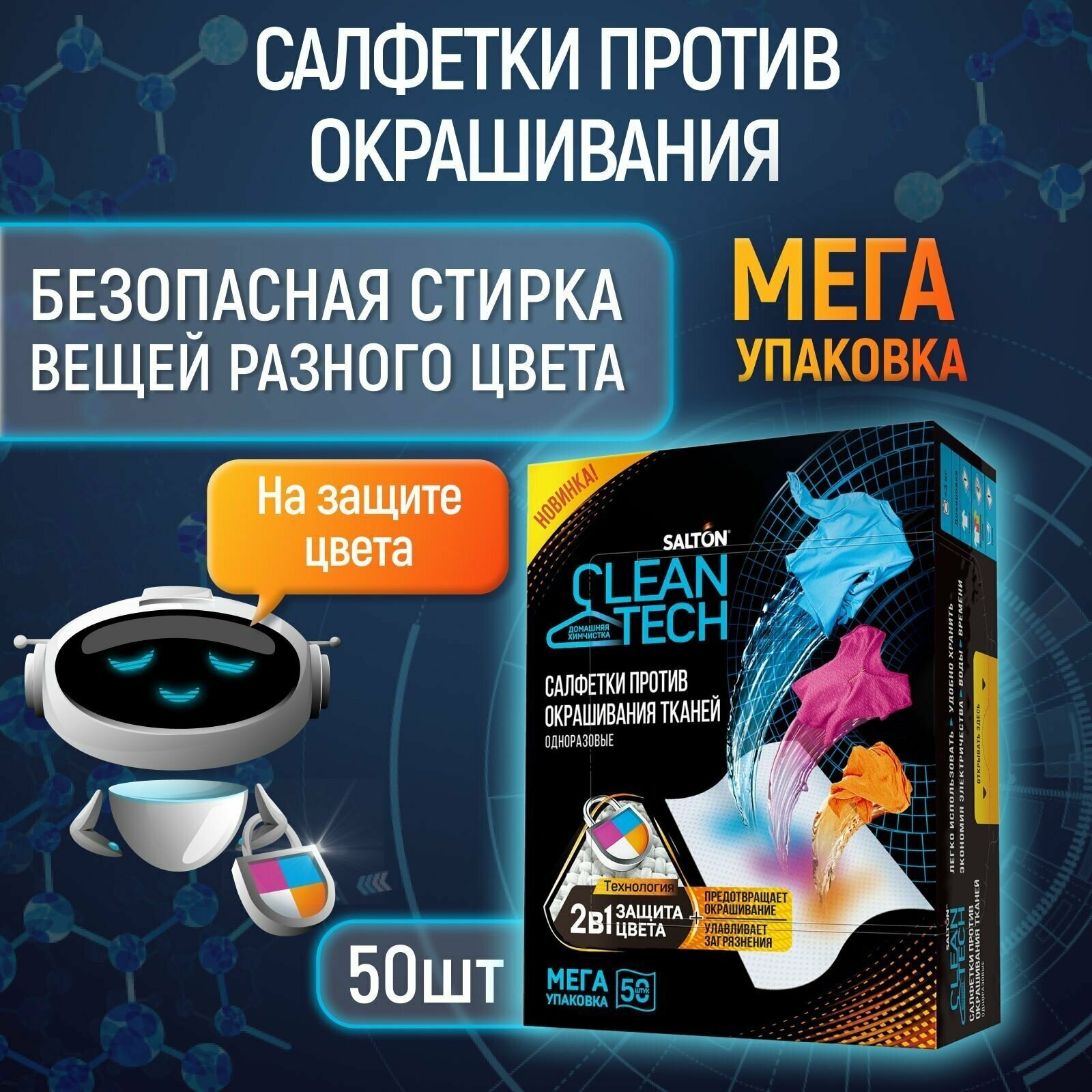 Салфетки для стирки Salton CleanTech Против Окрашивания Тканей 50 шт информация: