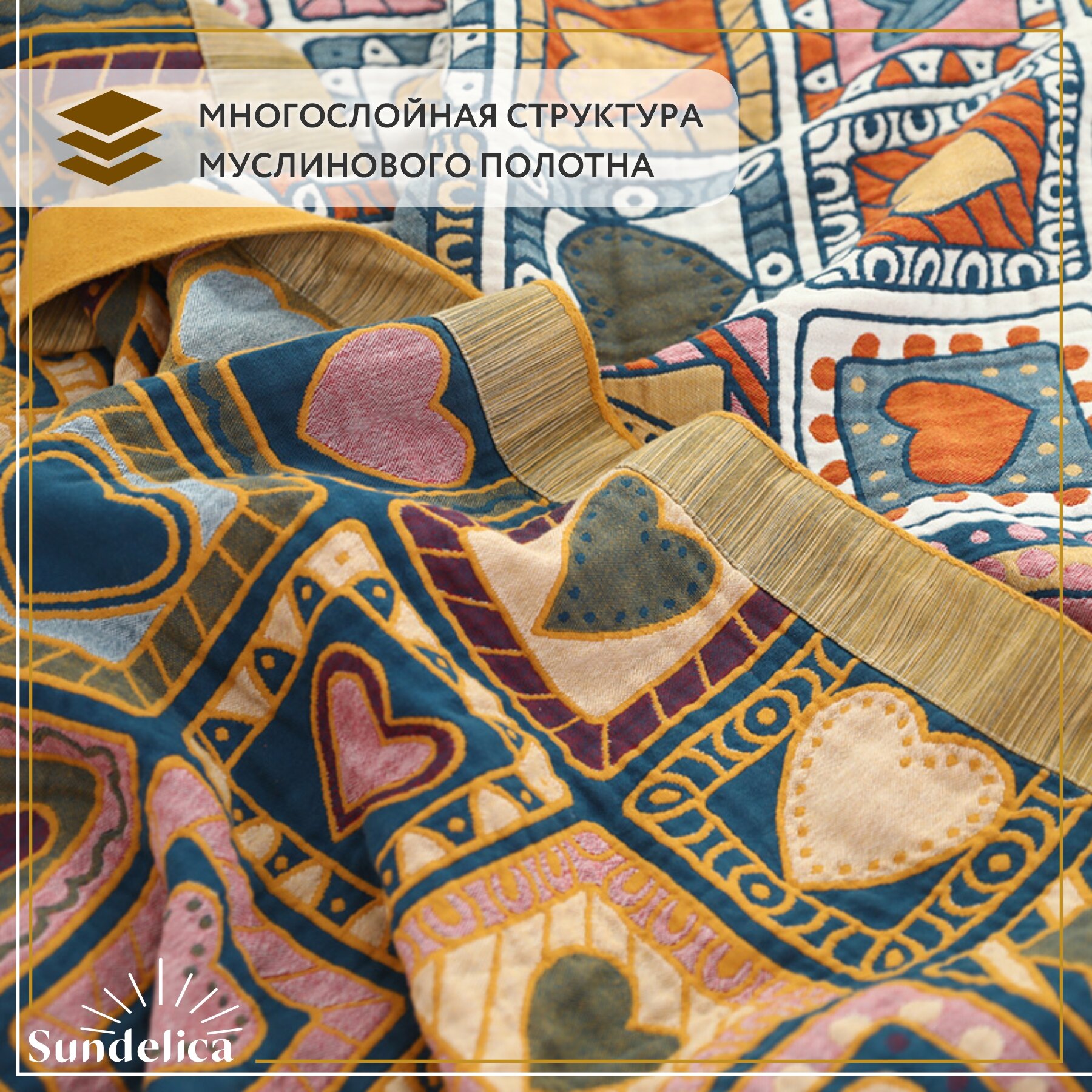 Покрывало на кровать Sundelica Плед 230х250 см "Солнечный орнамент" Хлопок Муслиновое одеяло 5 661 ₽