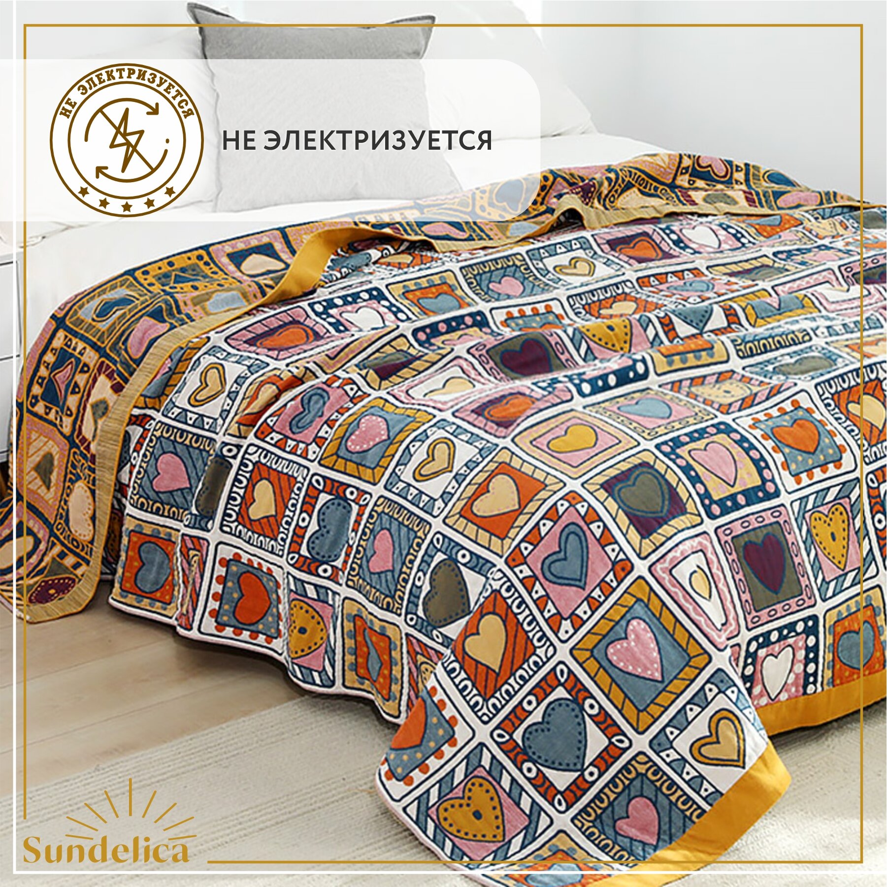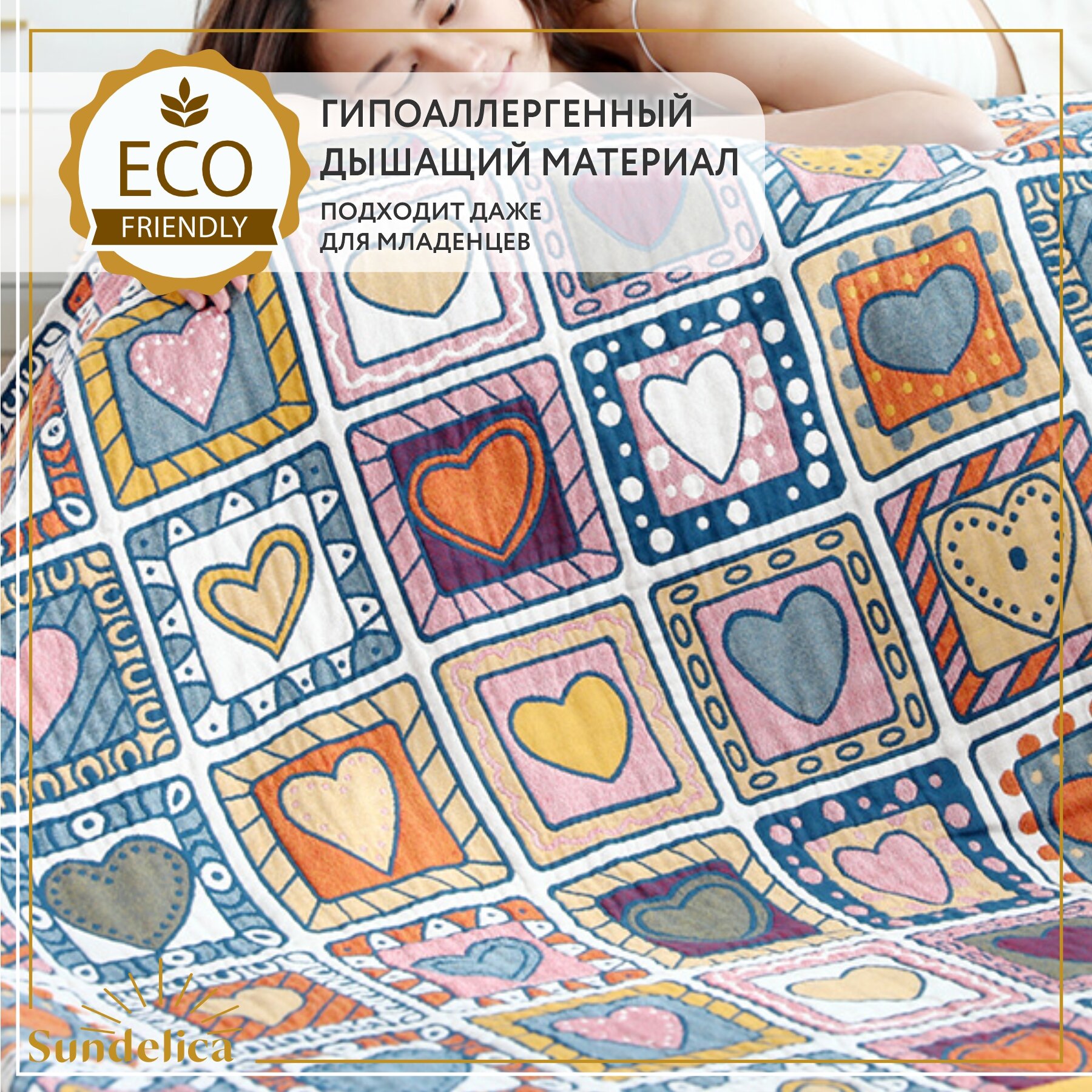 Отзывы на Покрывало Sundelica "Сердечки" 230x250 см, хлопок, двухстороннее