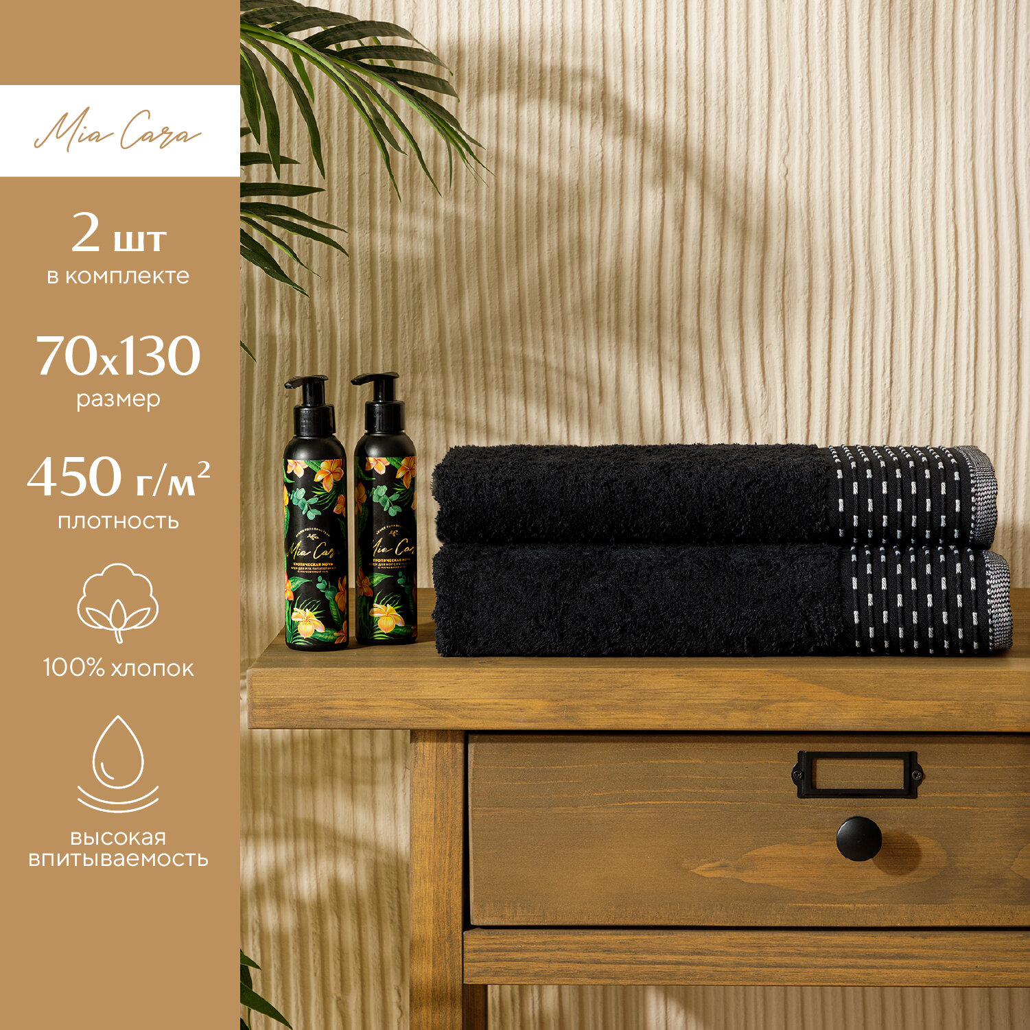 Набор махровых полотенец "Mia Cara" (70х130х2шт) Инь-Янь черный / махровое полотенце банное информация: