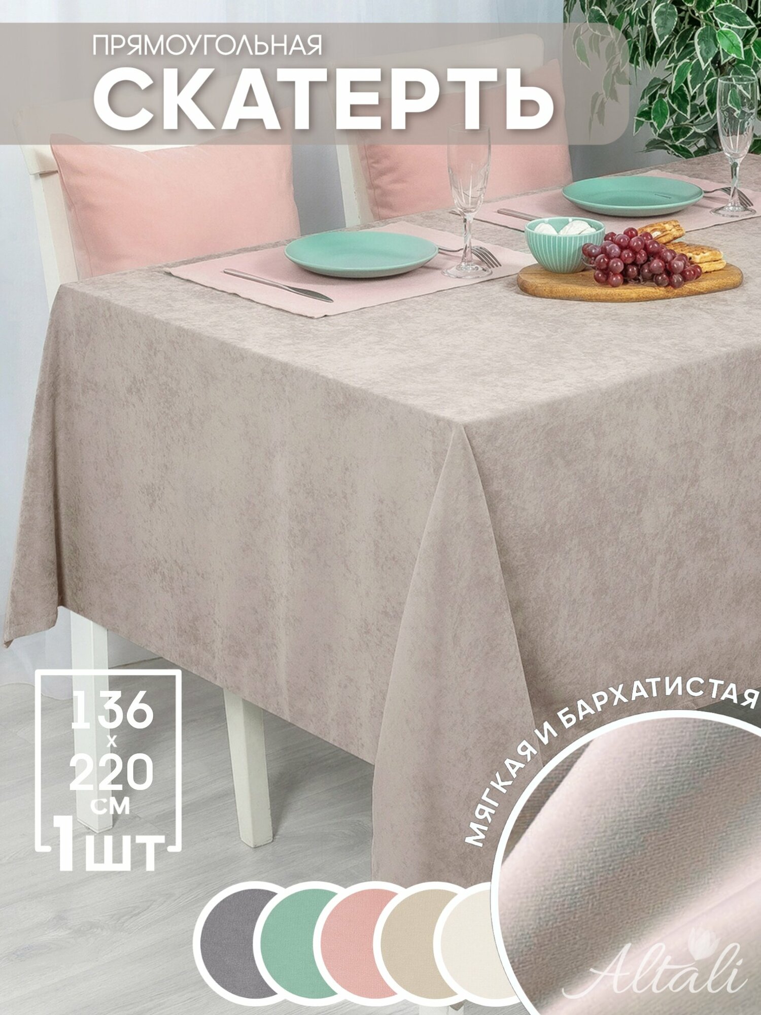 Скатерть кухонная прямоугольная на стол 136x220 Сахара / ткань велюр / для кухни, дома, дачи /Altali 1 349 ₽