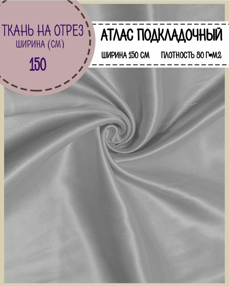 10 цен на ткань Атлас сатин, цв. серый, пл. 80 г/м2, ш-150 см, на отрез, цена за пог. метр
