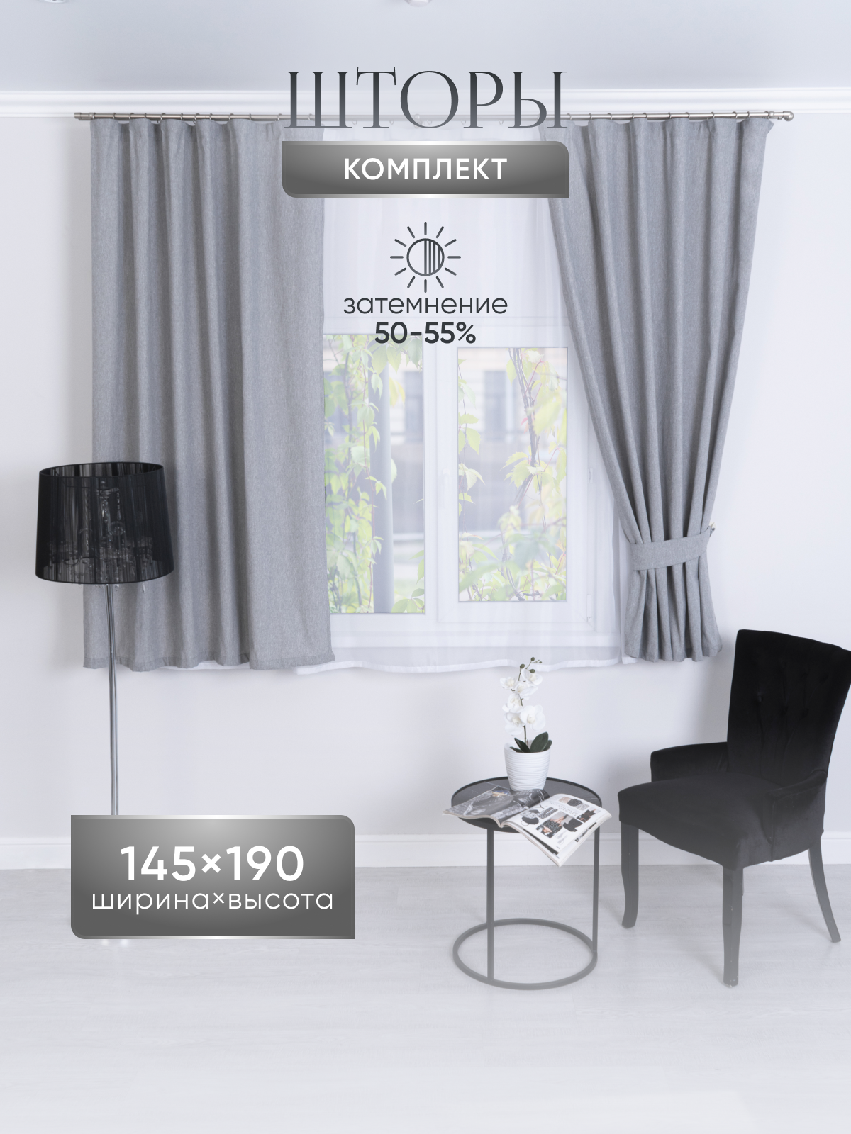 Шторы короткие Worldacces, 145х190 см с подхватом (св серые 2 шт) информация: