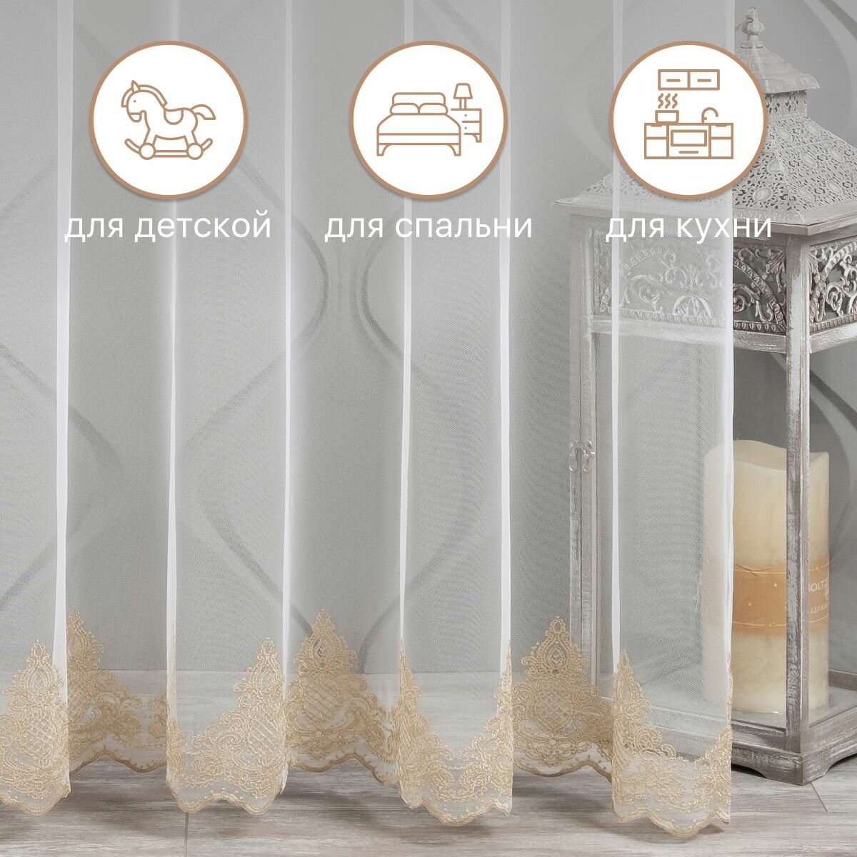 Тюль сетка с вышивкой Arya FREZYA для комнаты, для кухни, 300x270 см, кремовый 1 900 ₽