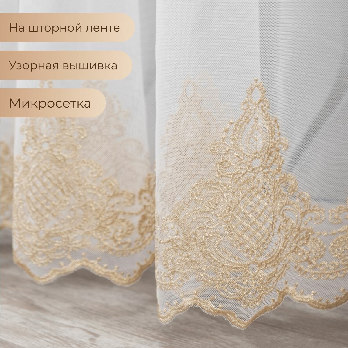 Тюль сетка с вышивкой Arya FREZYA для комнаты, для кухни, 300x270 см, золотистый информация: