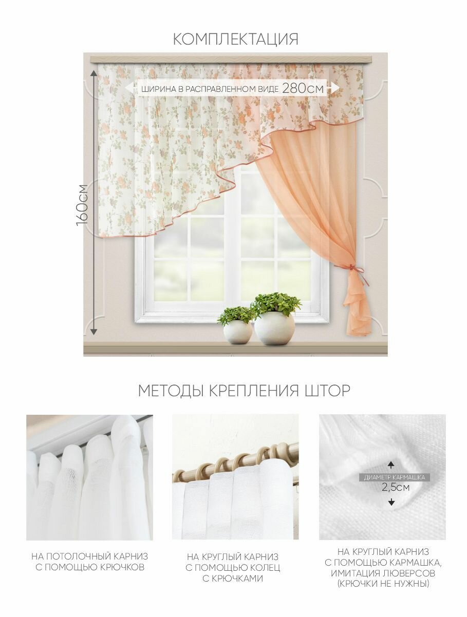 Комплект штор для кухни Witerra "Византия", 280х160 см, персиковый информация: