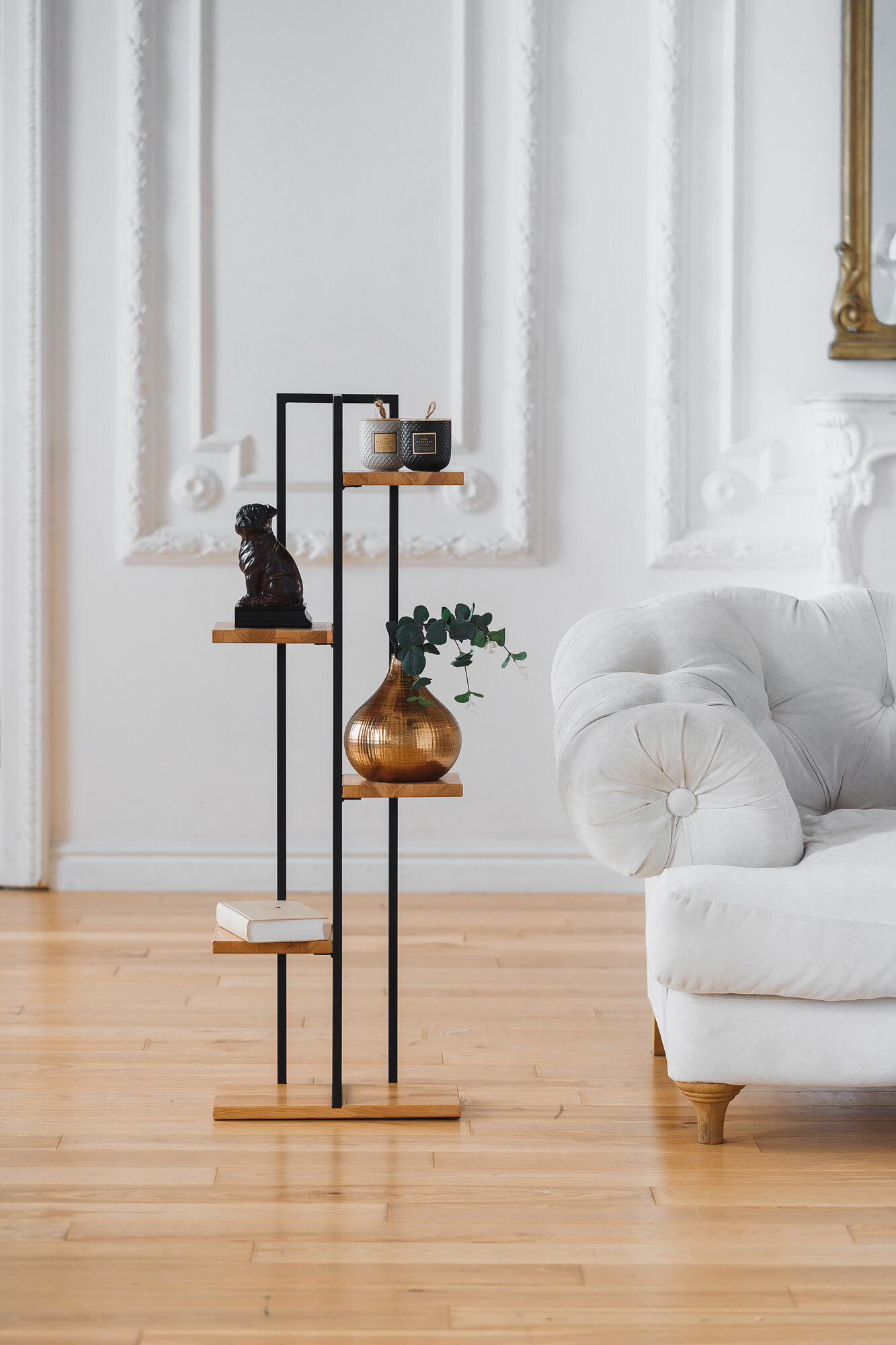 Стеллаж металлический Лофт напольный с деревянными с полками