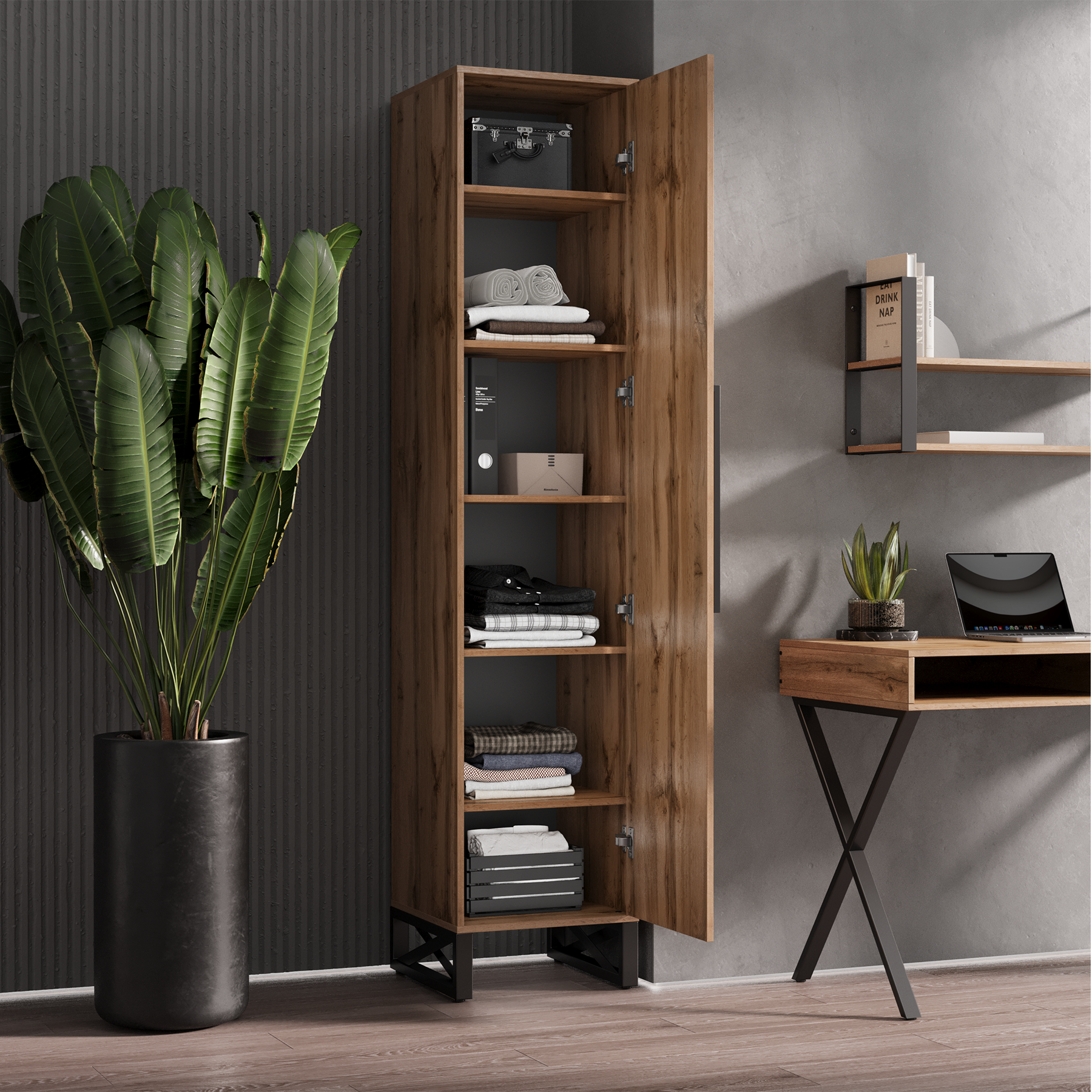 Шкаф лофт Волстрит Пенал Полочный 210х45х45 TOPLOFT информация: