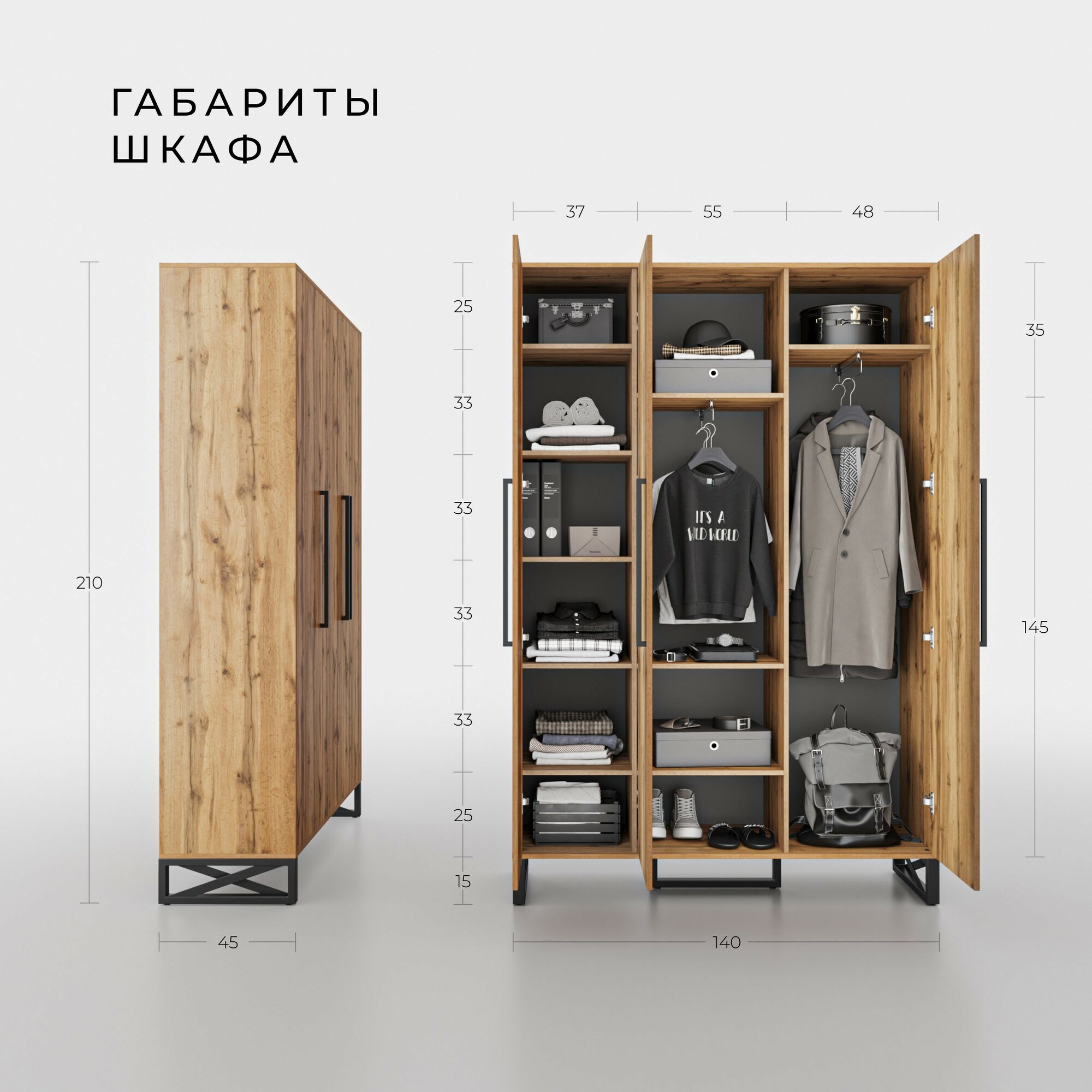 Отзывы на Шкаф лофт Волстрит трехстворчатый напольный 140х45х210 TOPLOFT