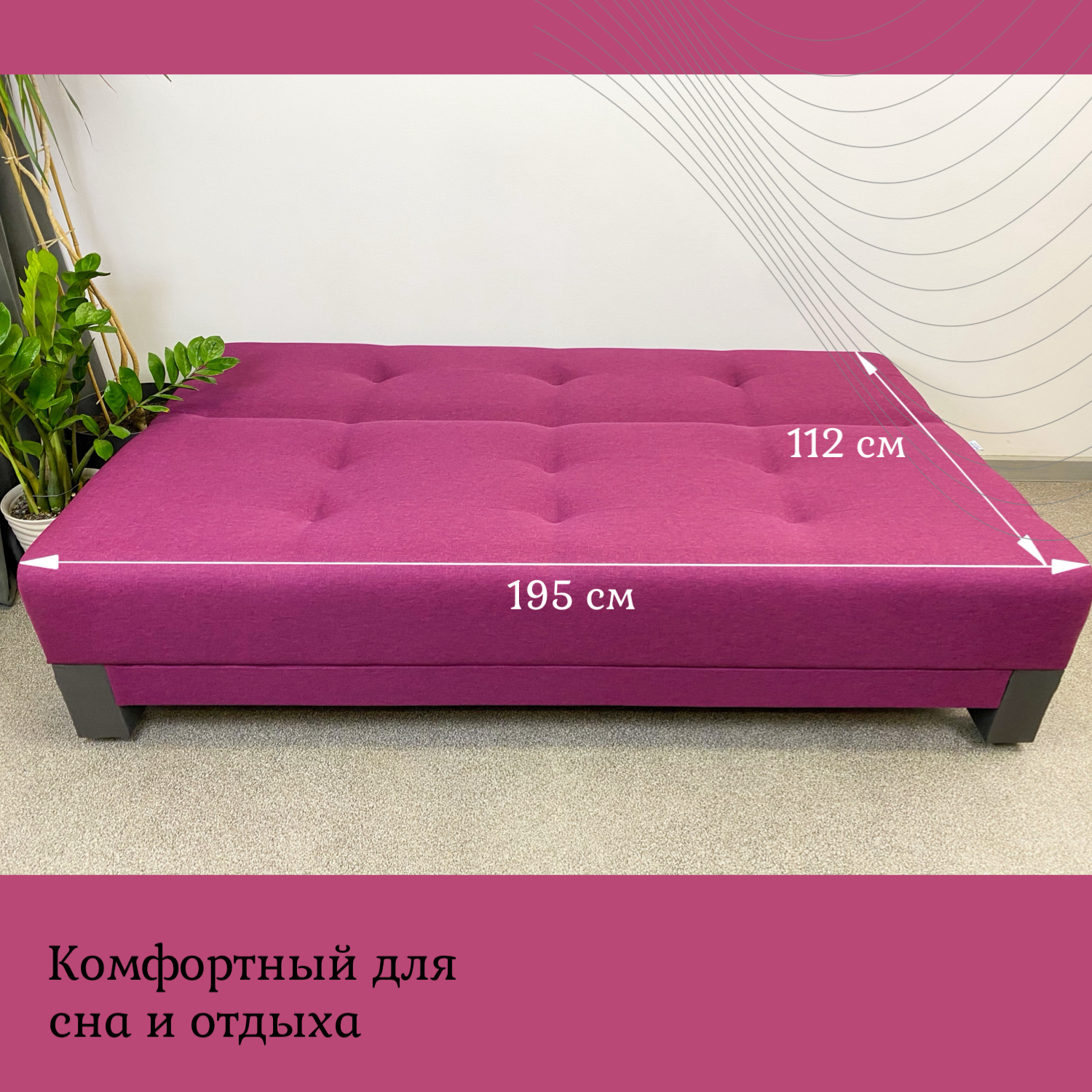 Диван кровать раскладной Поло ЭКО EDLEN, рогожка plum, спальное место 112*195 см 25 430 ₽