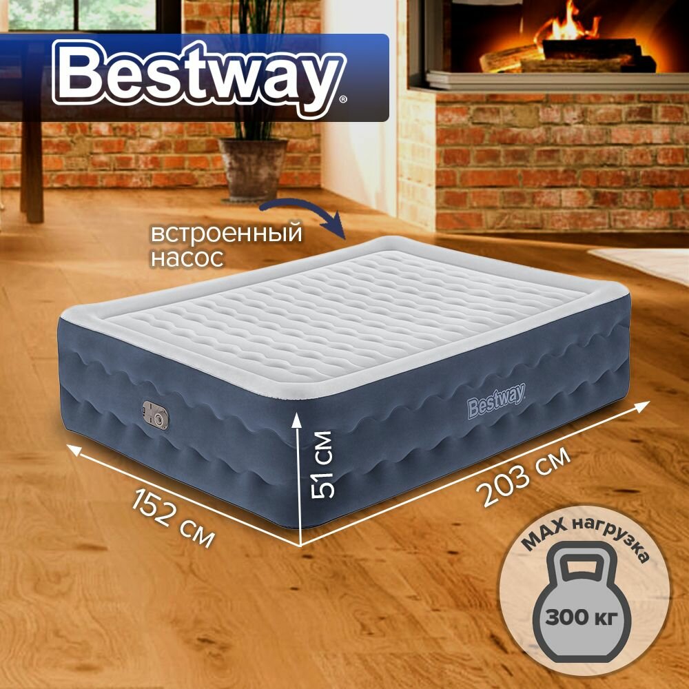 Надувная кровать Bestway 193х203х56см с подголовником, встроенный насос 220В, до 300кг