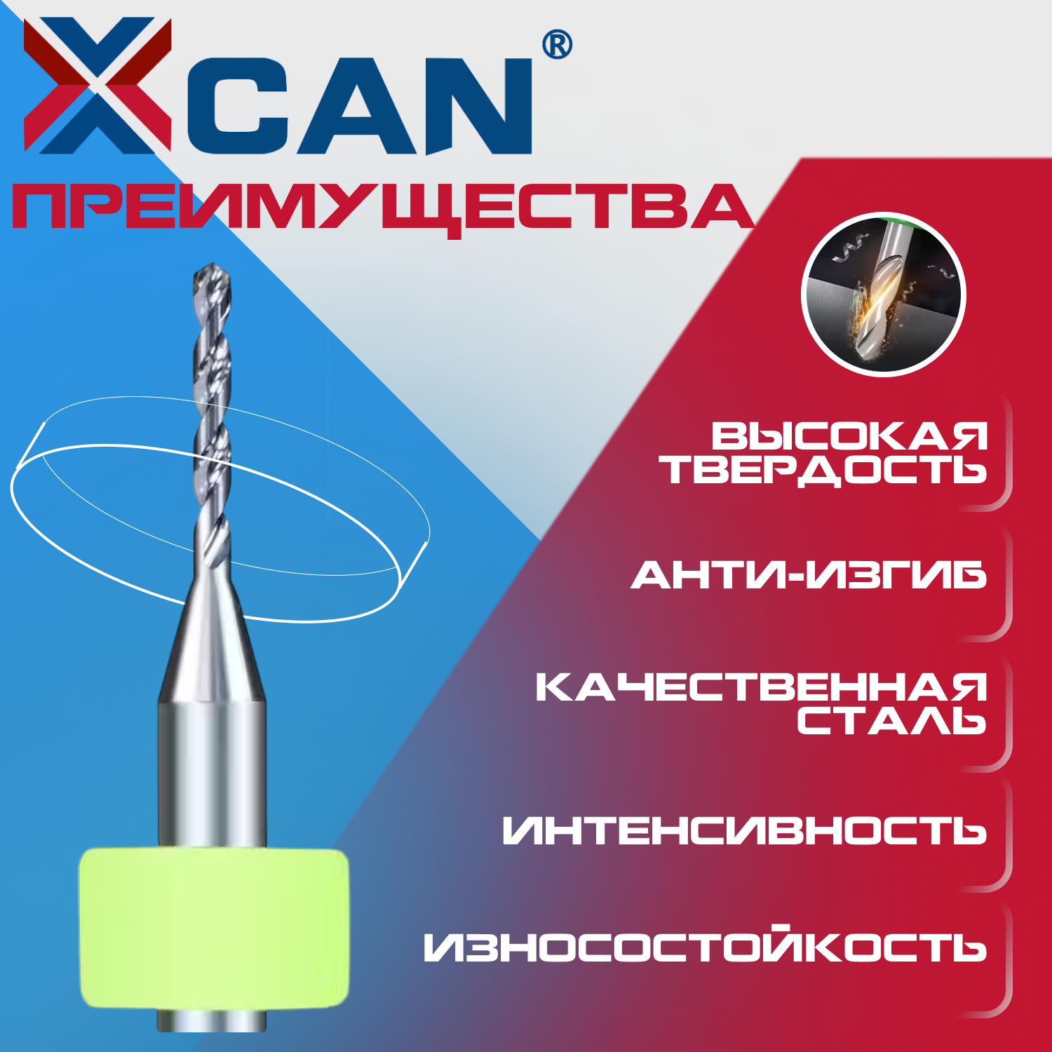Набор сверл спиральных XCAN для печатных плат, размер 3,175х2,5х38 мм, 10 шт.