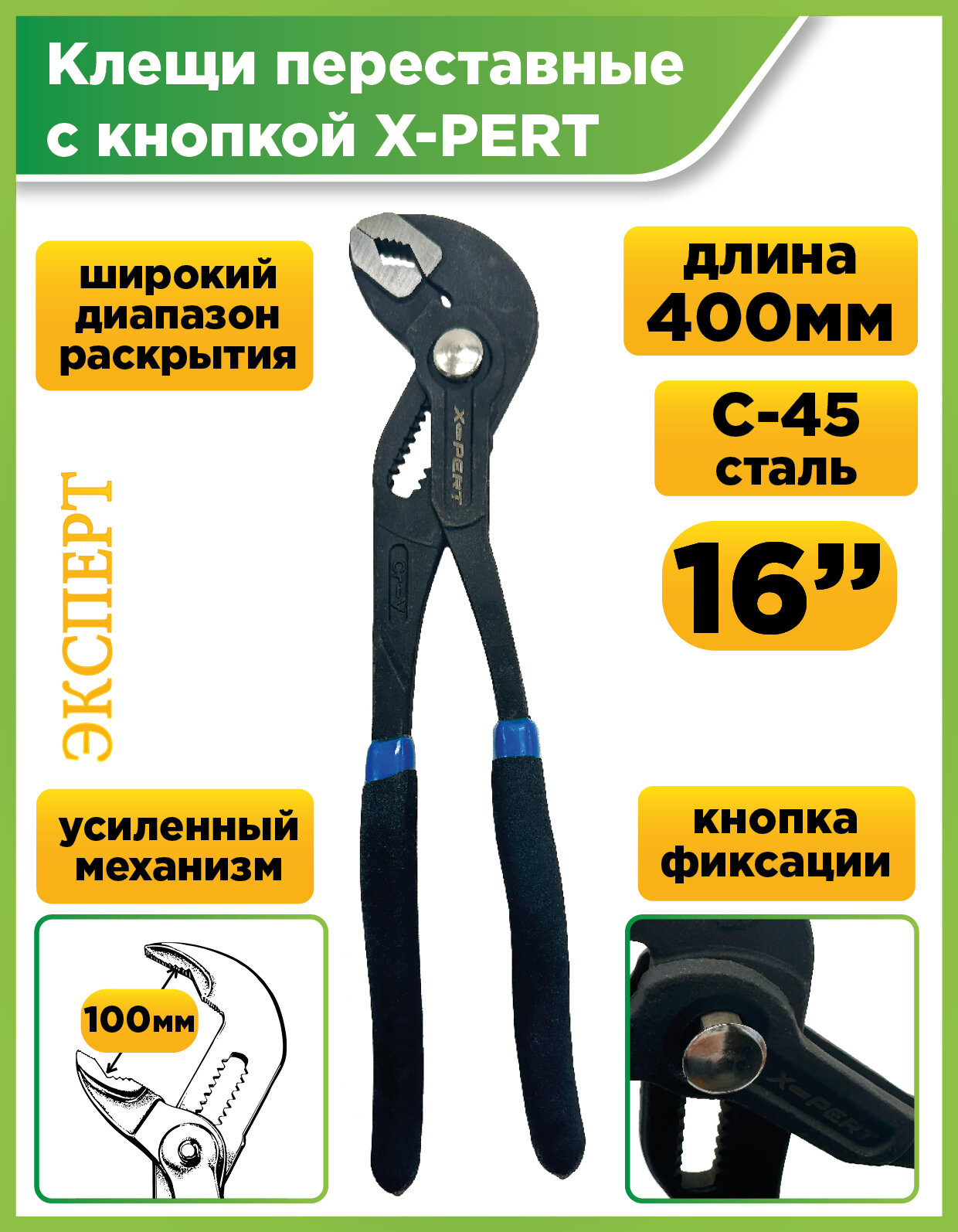 Переставные сантехнические клещи "Попугай", X-pert, 16 дюймов. 400мм. 1 599 ₽
