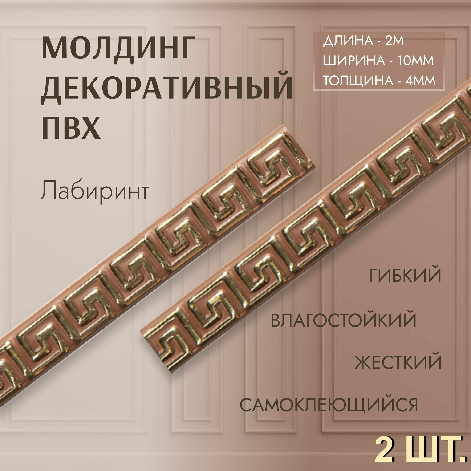 Молдинг для декора стен лабиринт 4*10 мм (длина 2,0м) самоклеющийся бежевый (2 шт) декор дома и интерьера 600 ₽