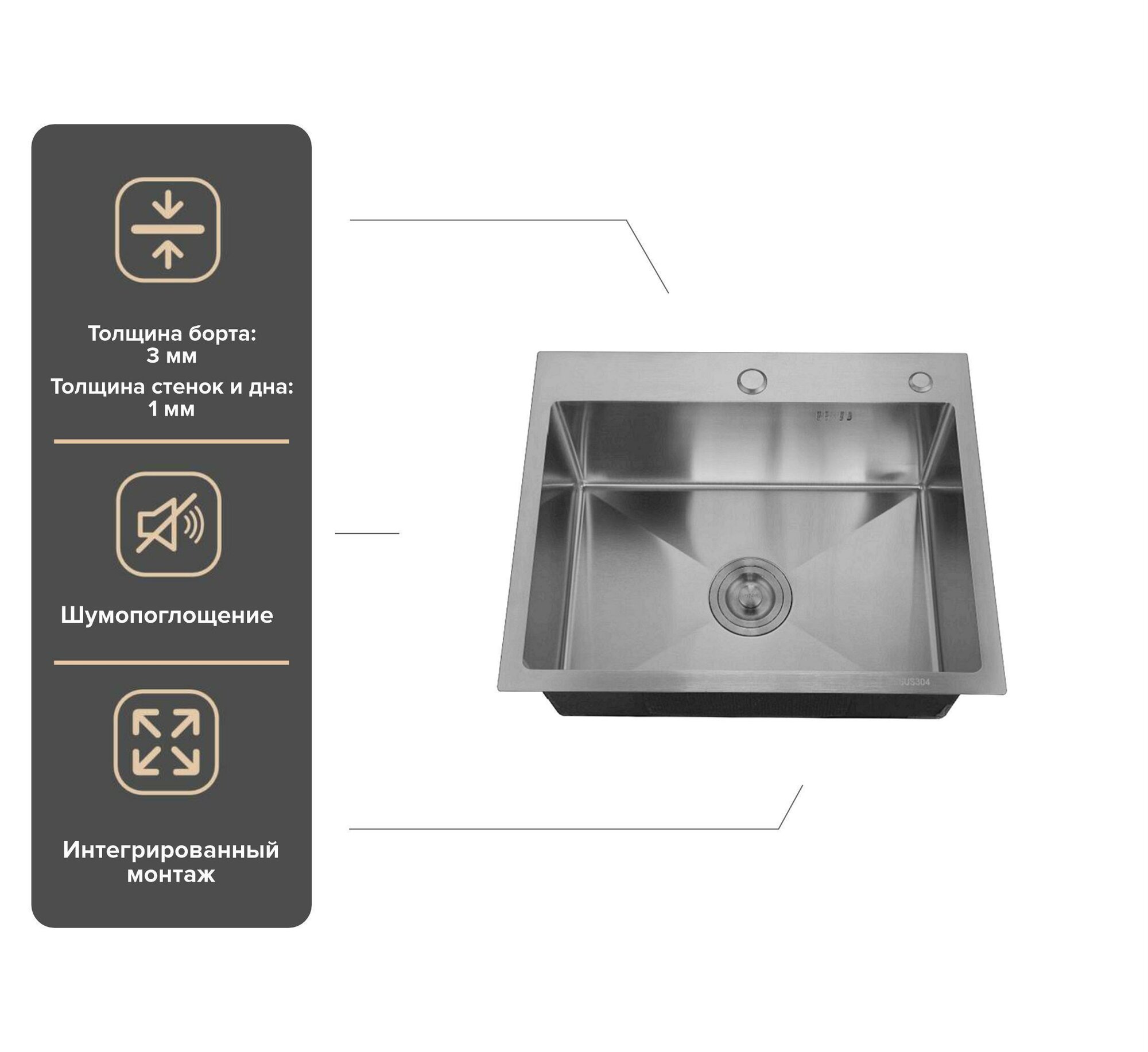 Врезная кухонная мойка Ростовская Мануфактура Сантехники MR-5050, 50х50см, нержавеющая сталь