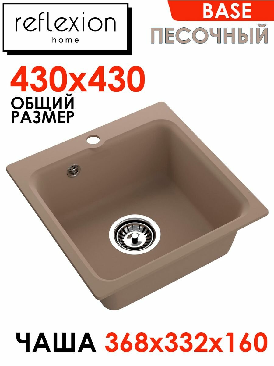 Мойка врезная для кухни каменная Reflexion Home RX0743SD,430х430,песочный информация: