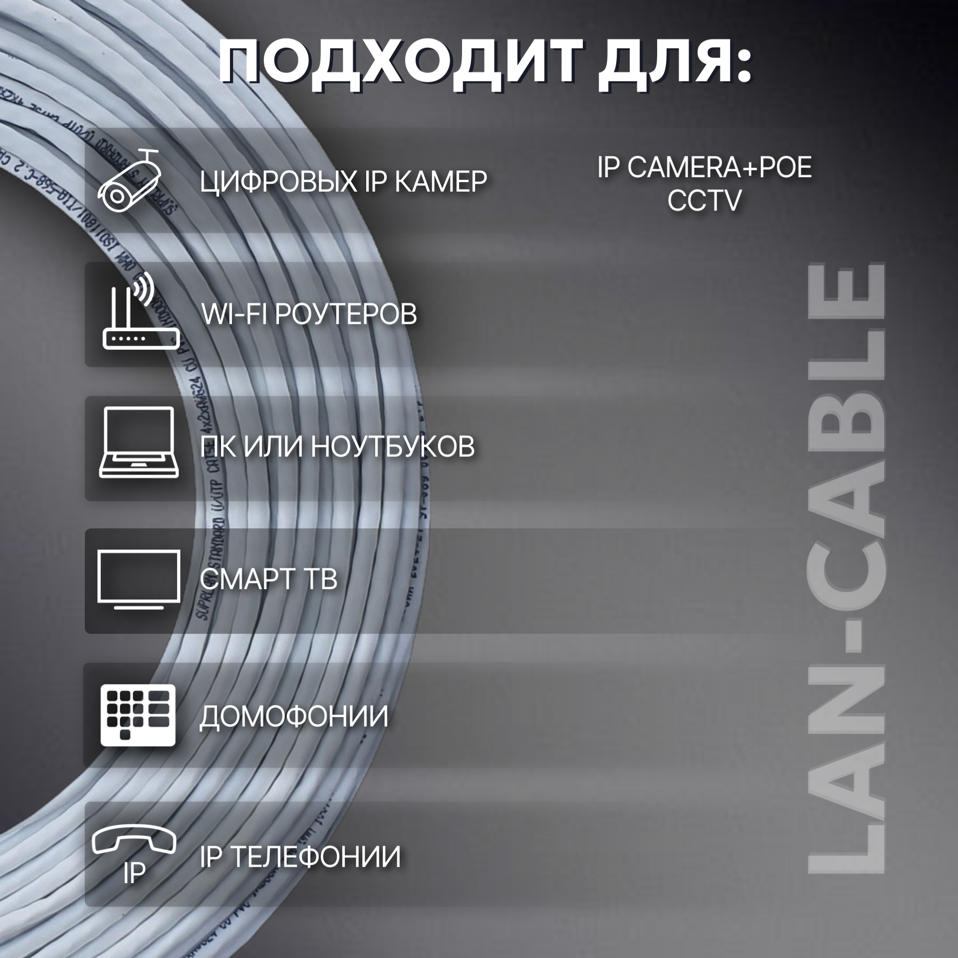Внутренний интернет кабель. Витая пара UTP 4 пары, Cat.5е 24AWG Cu (Чистая бескислородная медь класса А) цвет: белый, 20 метров. информация: