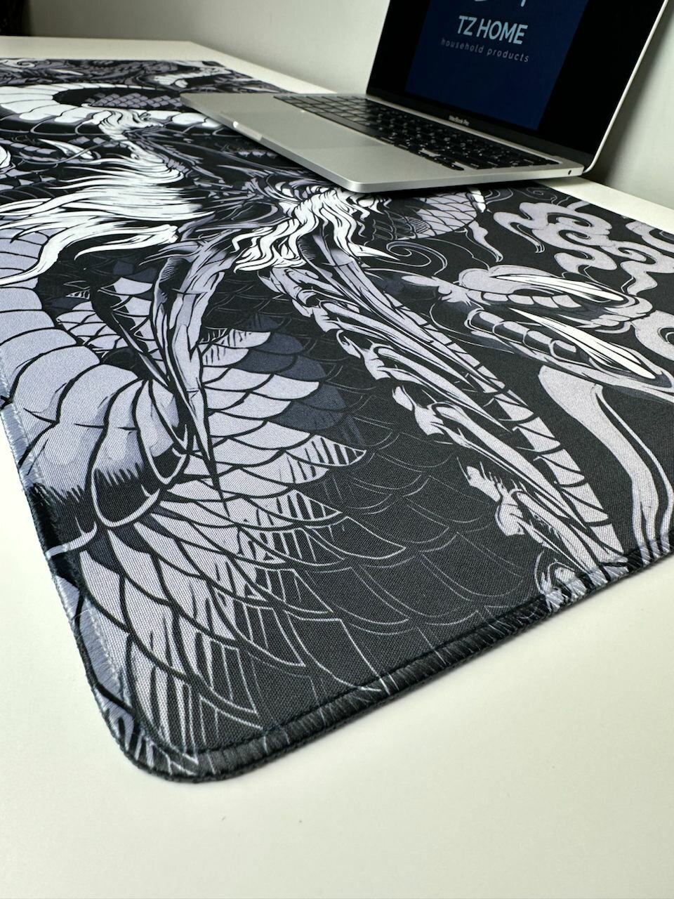 Отзывы на Игровой коврик для мыши TZ Cyber Дракон черно белый XXL 40 x 90 см