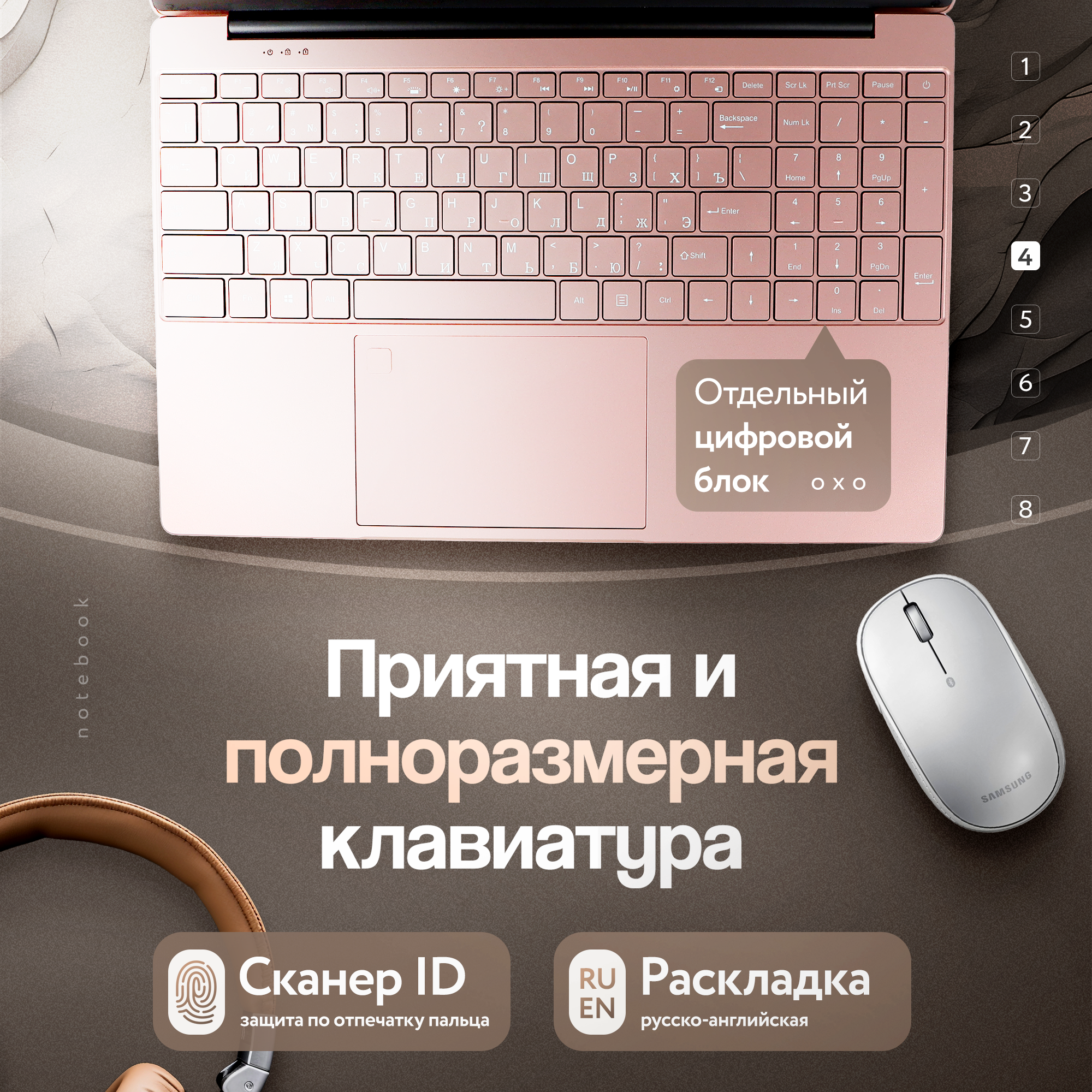 15,6" Ноутбук для работы и учебы, RAM 16 ГБ, SSD 512ГБ, IPS Full HD 1920x1080,Intel N95, Windows 11, цвет Розовый 35 261 ₽