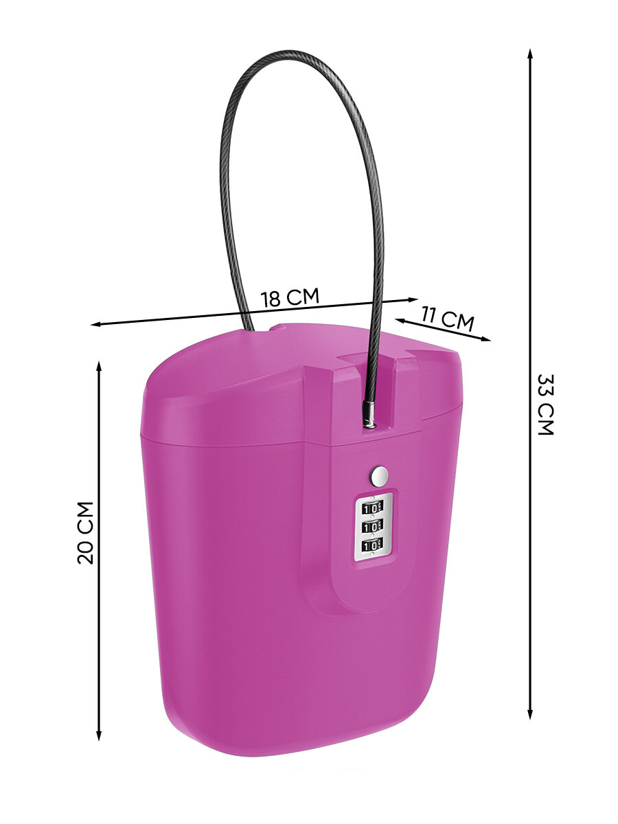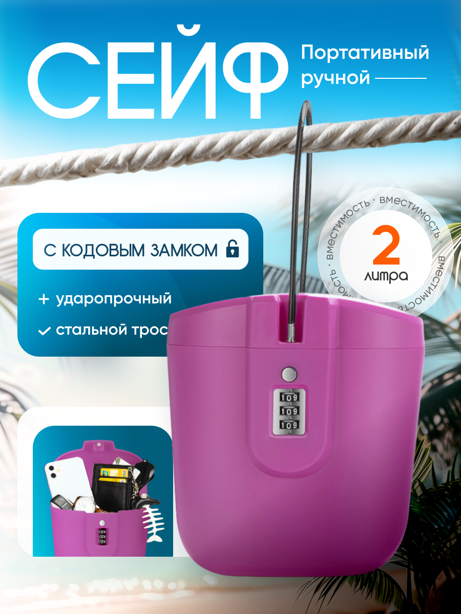 Переносной кодовый сейф с тросом, объем 2 литра, фиолетовый информация: