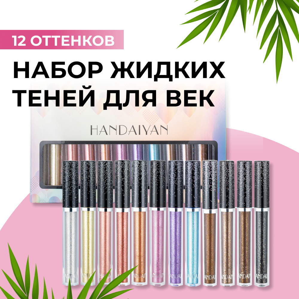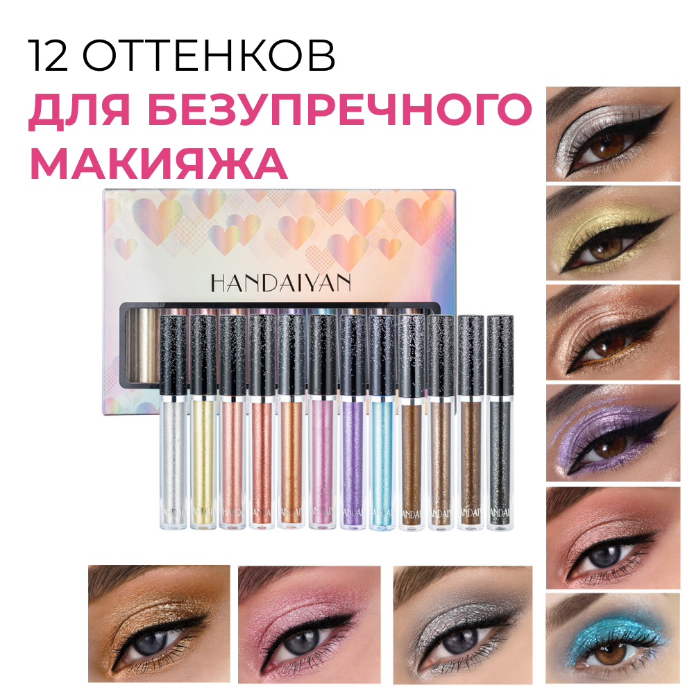 Отзывы на Набор жидких теней для век 12 цветов, стойкие, яркие, высокопигментированные