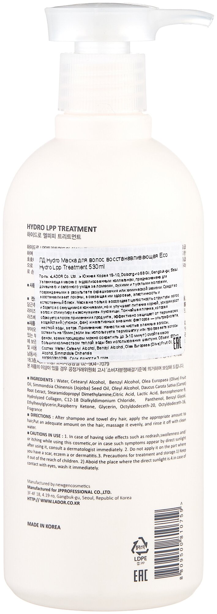 Маска для волос восстанавливающая LADOR Hydro Lpp Treatment 530 мл