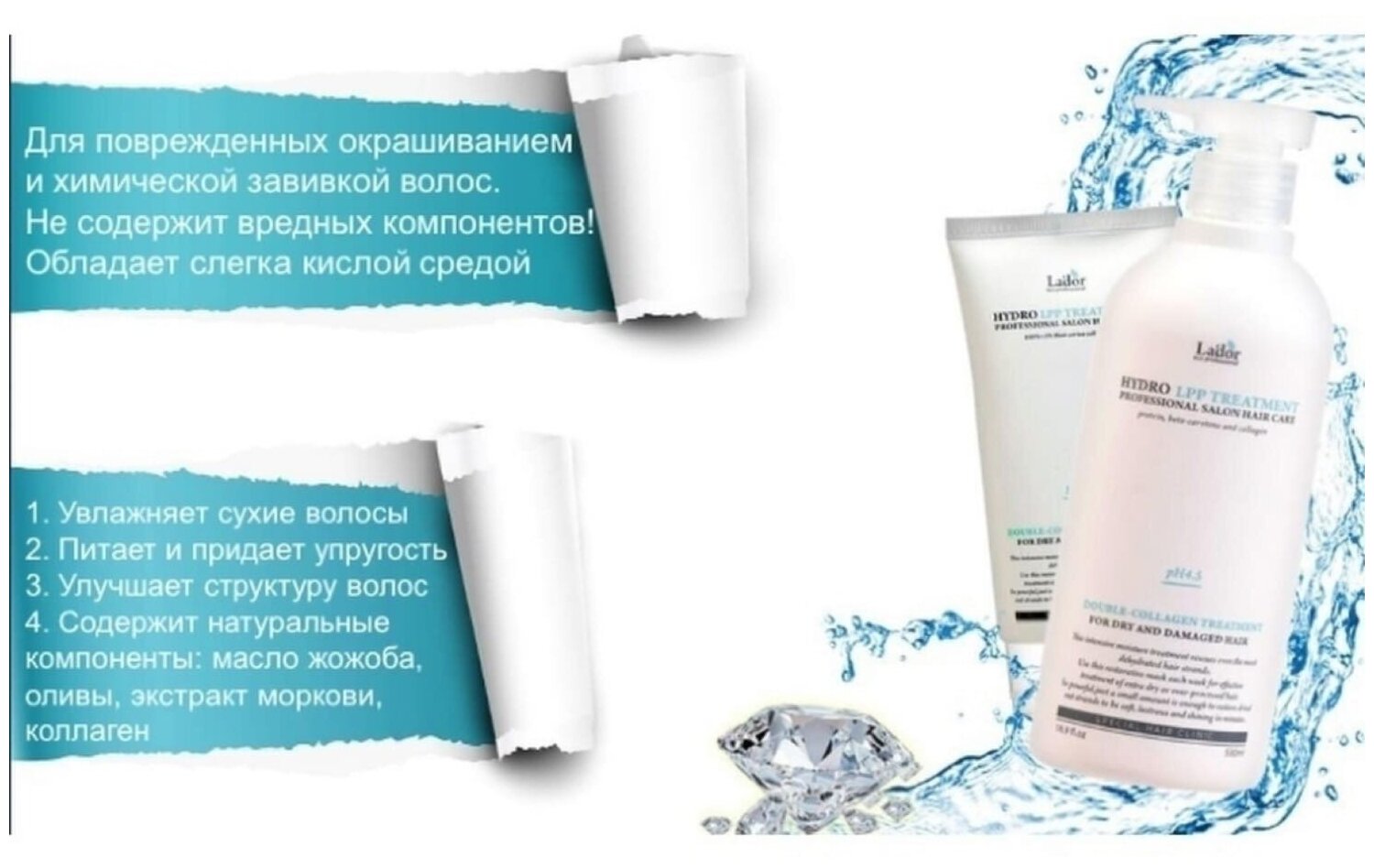 | Комплектация | La'dor, Маска для волос, профессиональная увлажняющая для сухих и поврежденных волос Hydro LPP-Treatment, 150 мл - 1ед. |