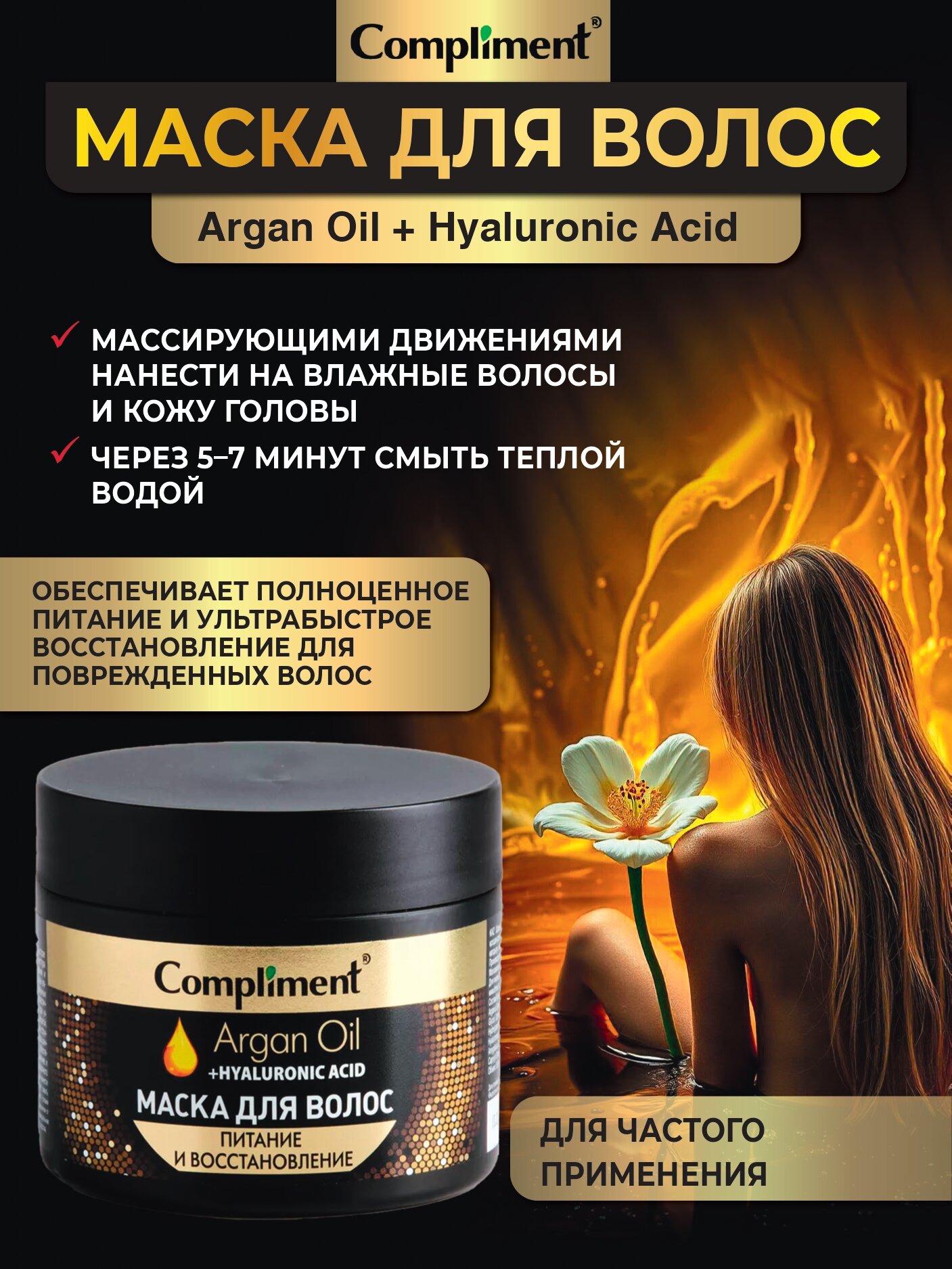 Compliment Argan Oil+ Hyaluronic Acid Маска для волос Питание и восстановление, 300мл информация: