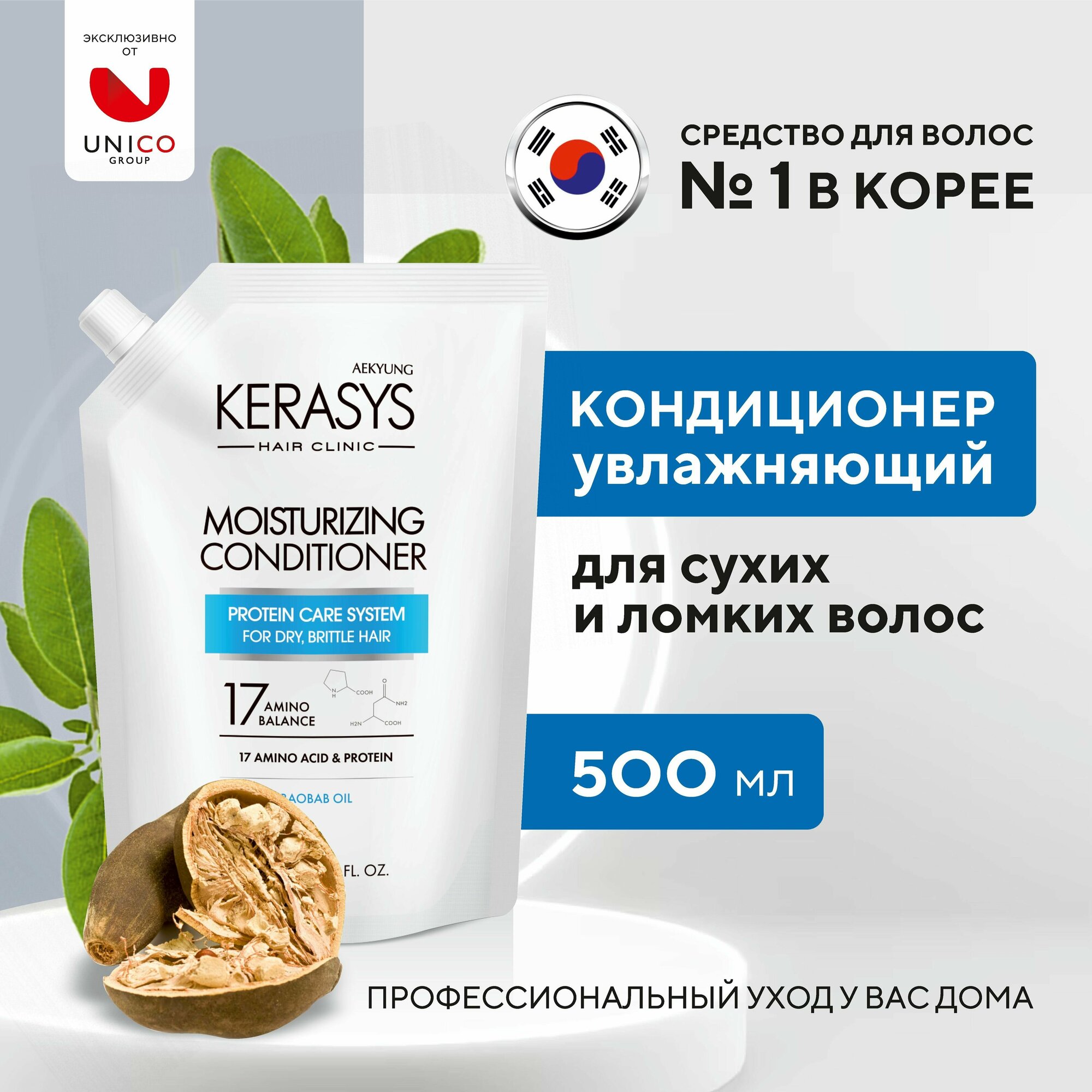 Kerasys Кондиционер для волос увлажняющий 500 мл сменный блок корейский протеиновый бальзам для сухих и ломких, вьющихся, ослабленных волос, Корея информация: