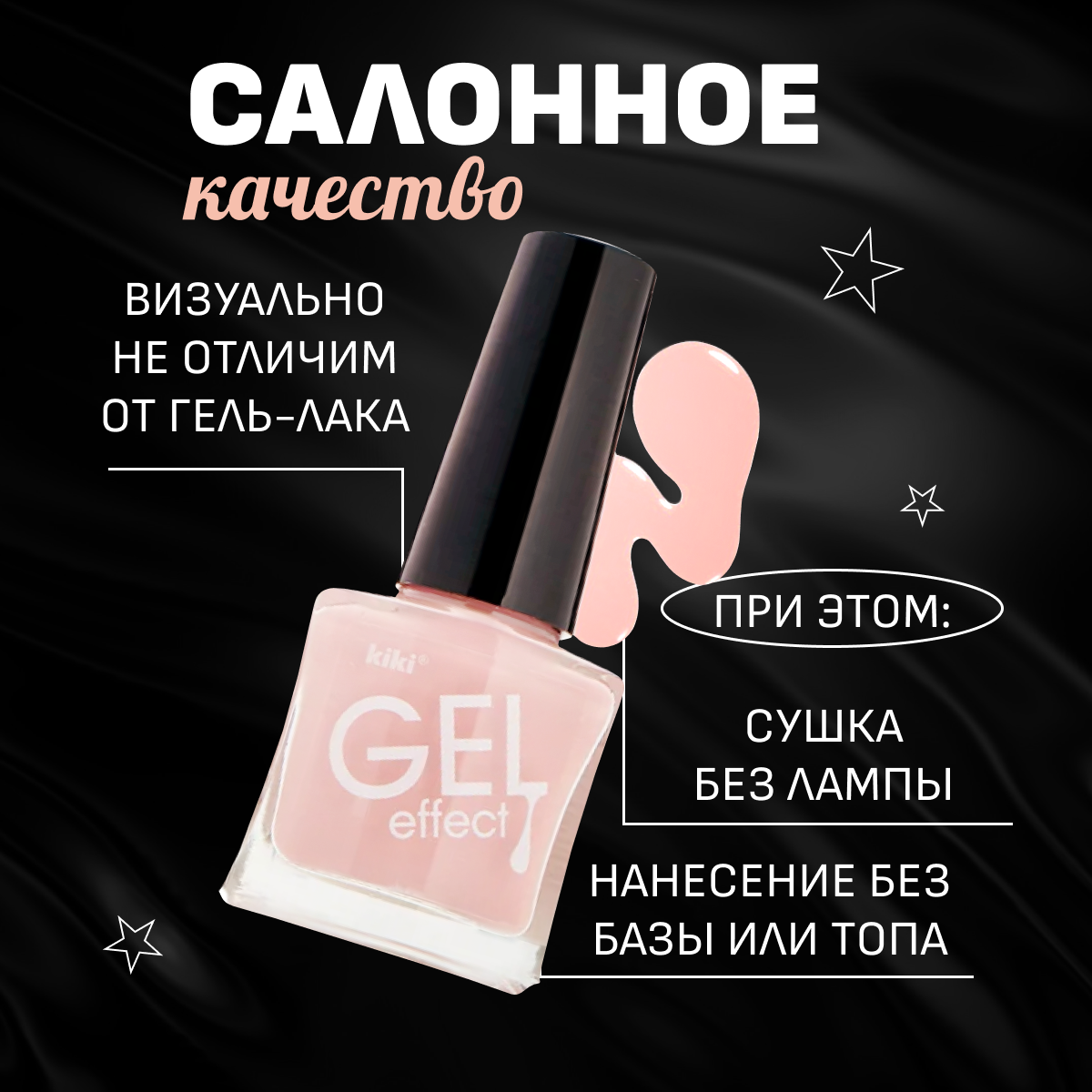 Лак для ногтей kiki Gel Effect тон 80 бледно-розовый, с гелевым эффектом без уф-лампы, цветной глянцевый маникюр и педикюр, 6 мл 164 ₽