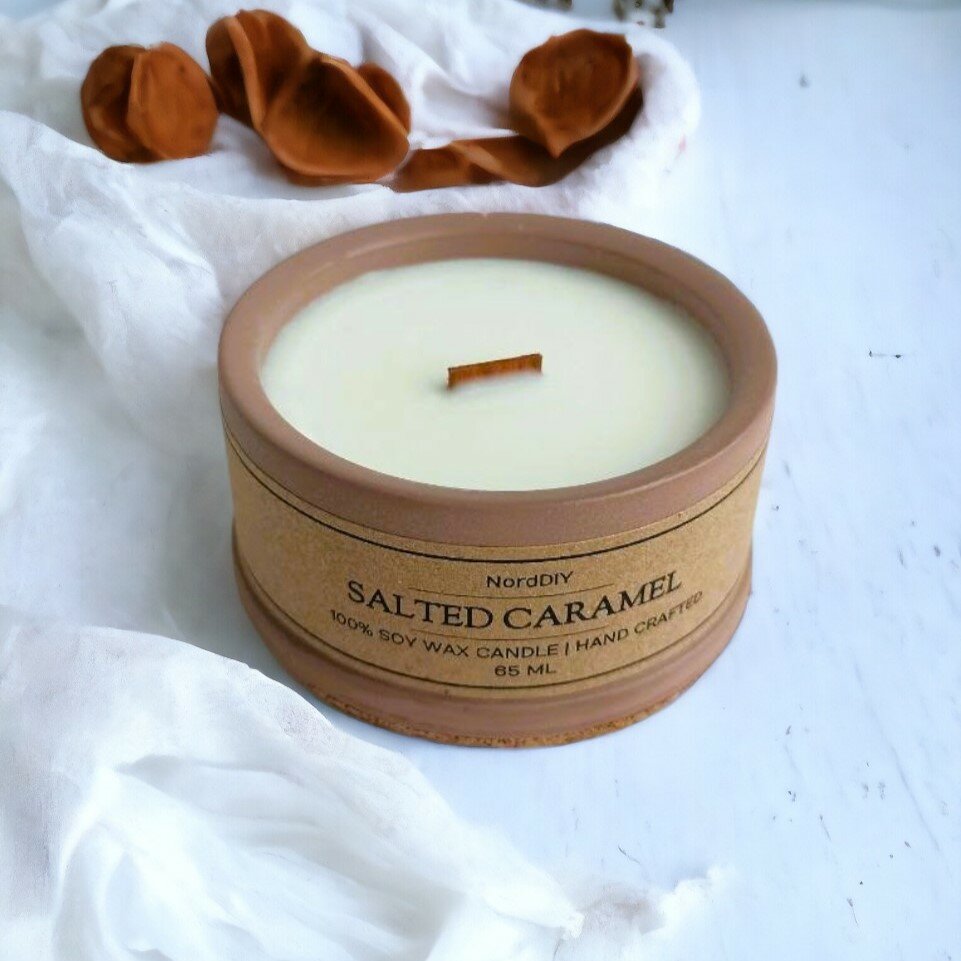 10 цен на Свеча ароматическая с деревянным фитилём "Соленая карамель" из соевого воска, 65 мл