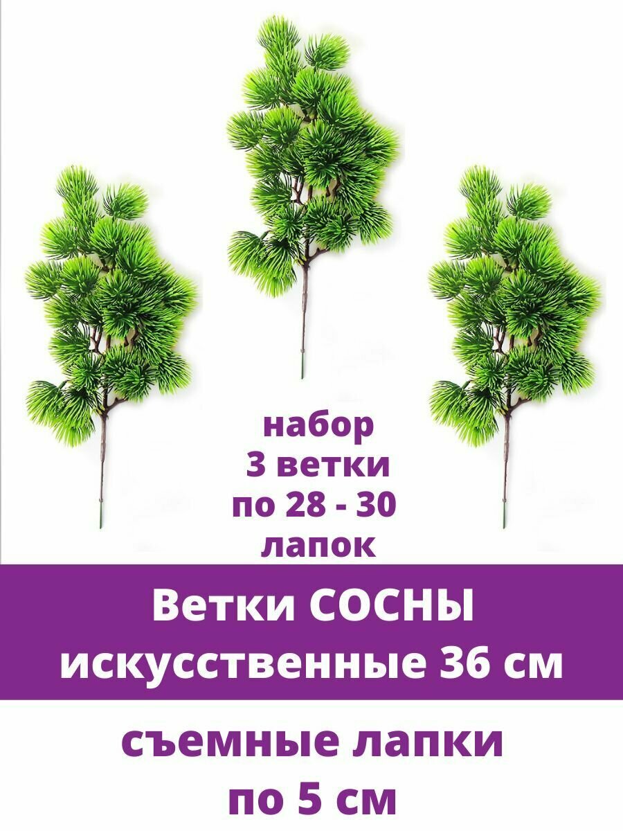 Сосна, хвойная ветка искусственная, декор зимний, рождественский, набор 3 ветки, 36 см информация:
