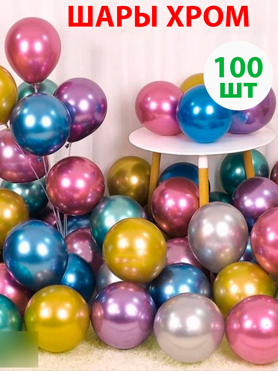 Набор воздушных шаров для фотозоны - 100 шт 25 см, Хром микс информация: