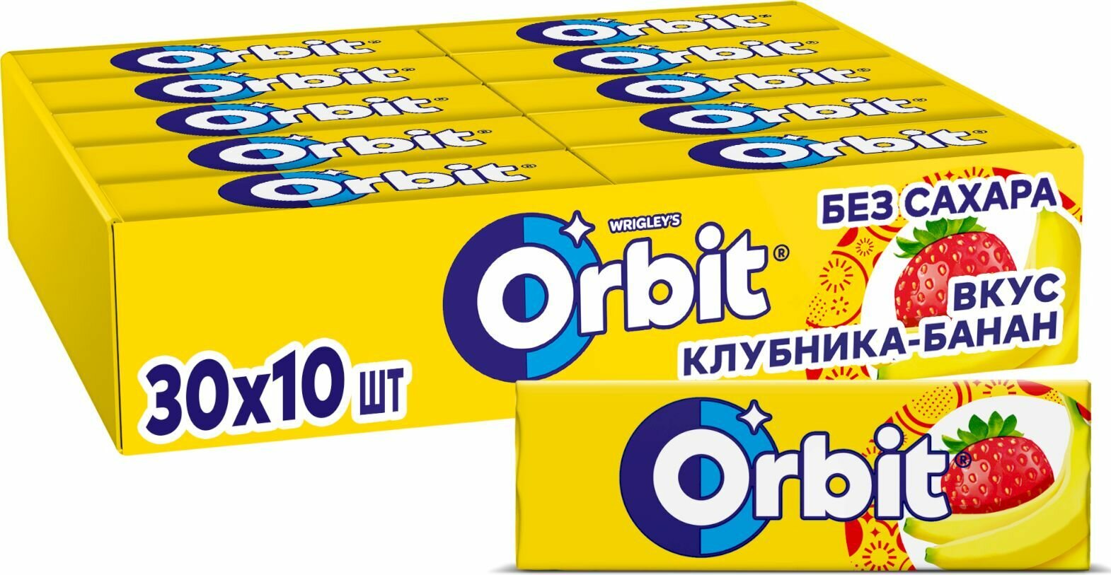 Жевательная резинка Орбит Клубника банан, по 13.6 г, 30 шт.
