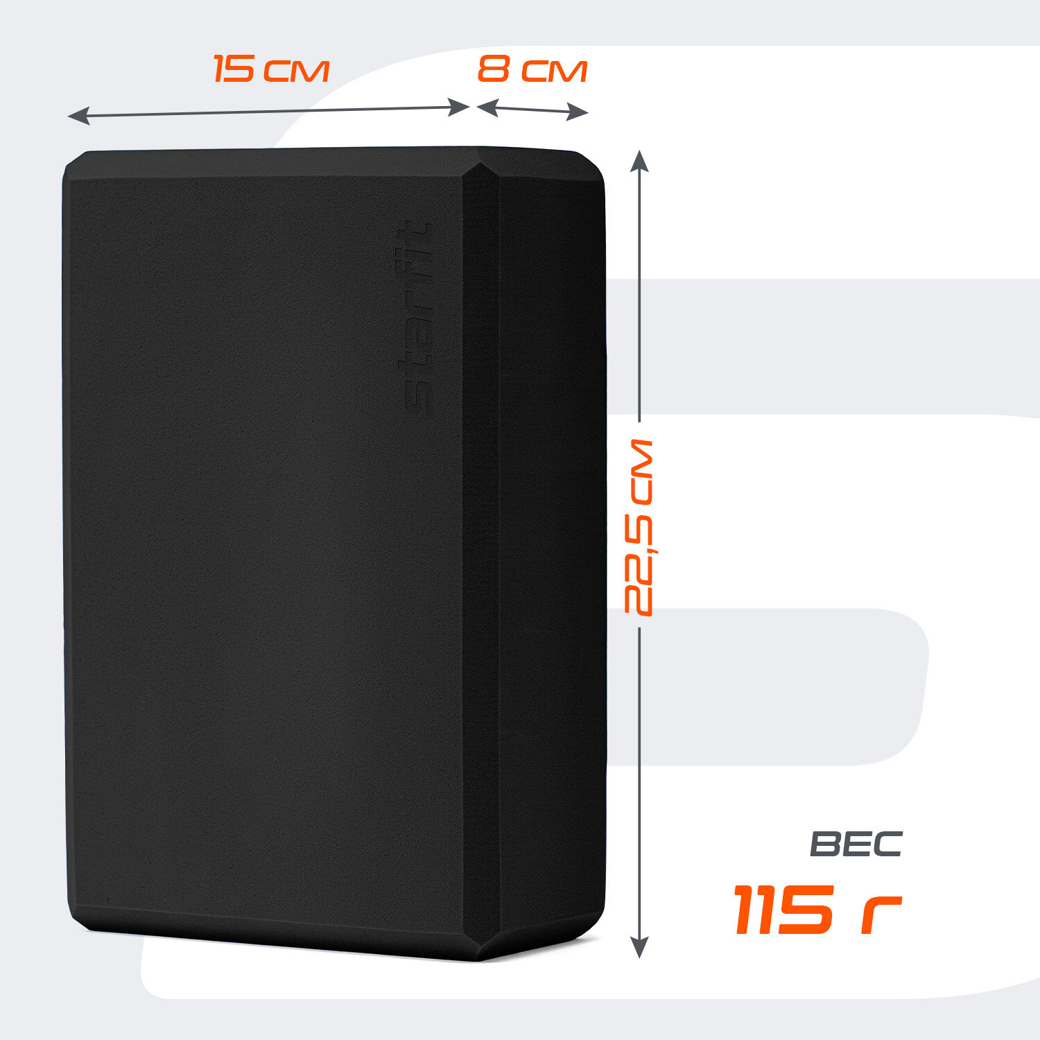 Блок для йоги STARFIT YB-200 EVA, 8 см, 115 гр, 22,5х15 см, черный информация: